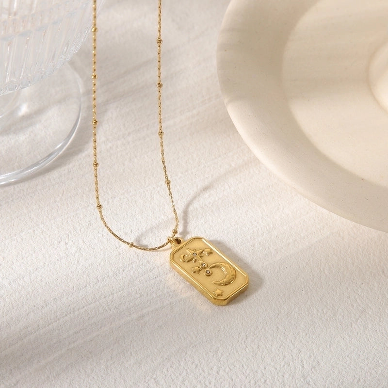 Minimalist Commute Human Sun Moon 304 Stainless Steel Zircon 18K Gold Plated Inlay Pendant Necklace