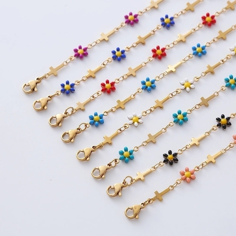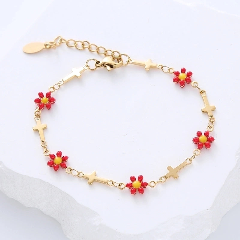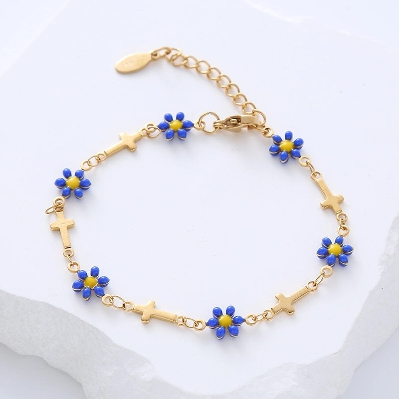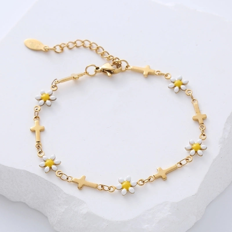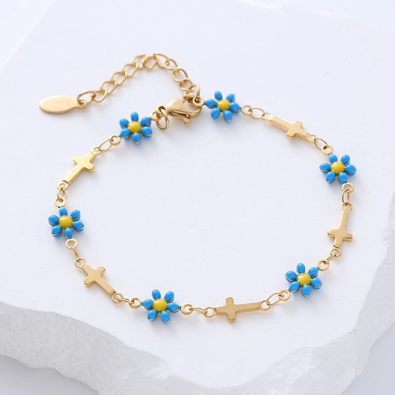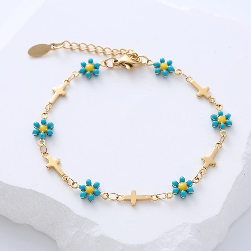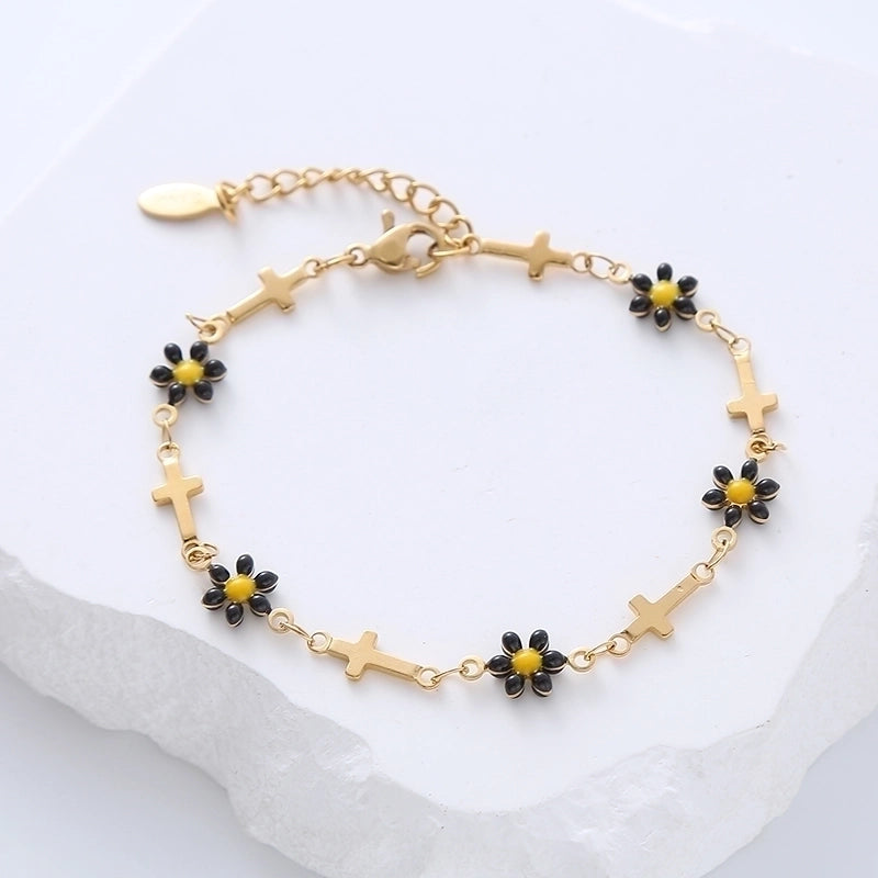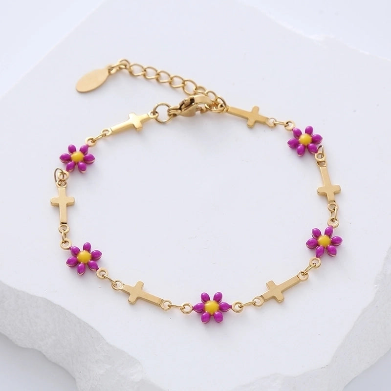 Minimalist Cross Flower 304 Stainless Steel 18K Gold Plated No Inlaid Stainless Steel Bracelets In Bulk