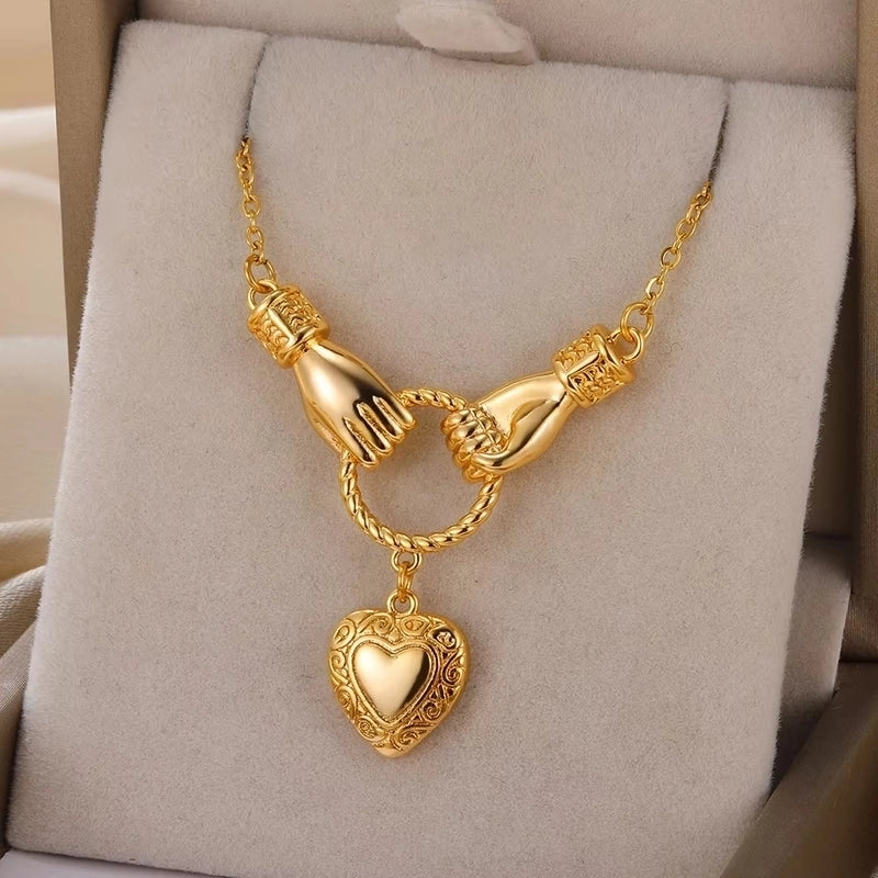Minimalist Cross Hand 304 Stainless Steel Zircon Pendant Necklace O-shaped Chain