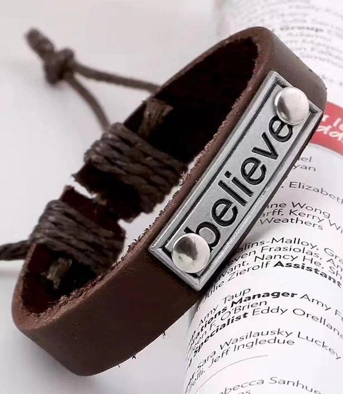 Minimalist Cross Letter Alloy Leather Alloy Men’s Bracelets