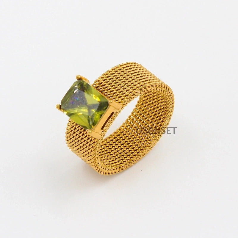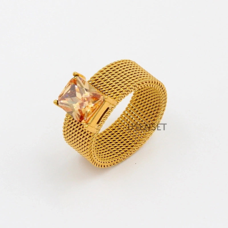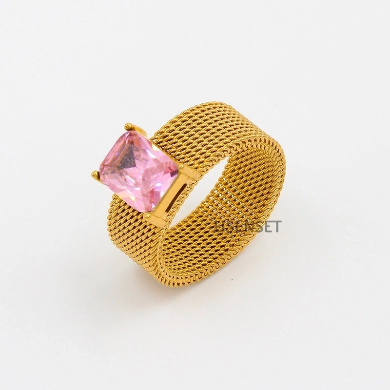 Minimalist Geometric 304 Stainless Steel Zircon 18K Gold Plated Inlay Stainless Steel Rings