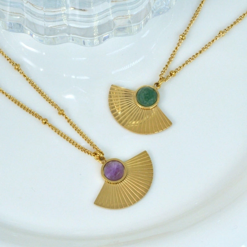 Minimalist Geometric Natural Stone Titanium Steel Plating Pendant Necklace