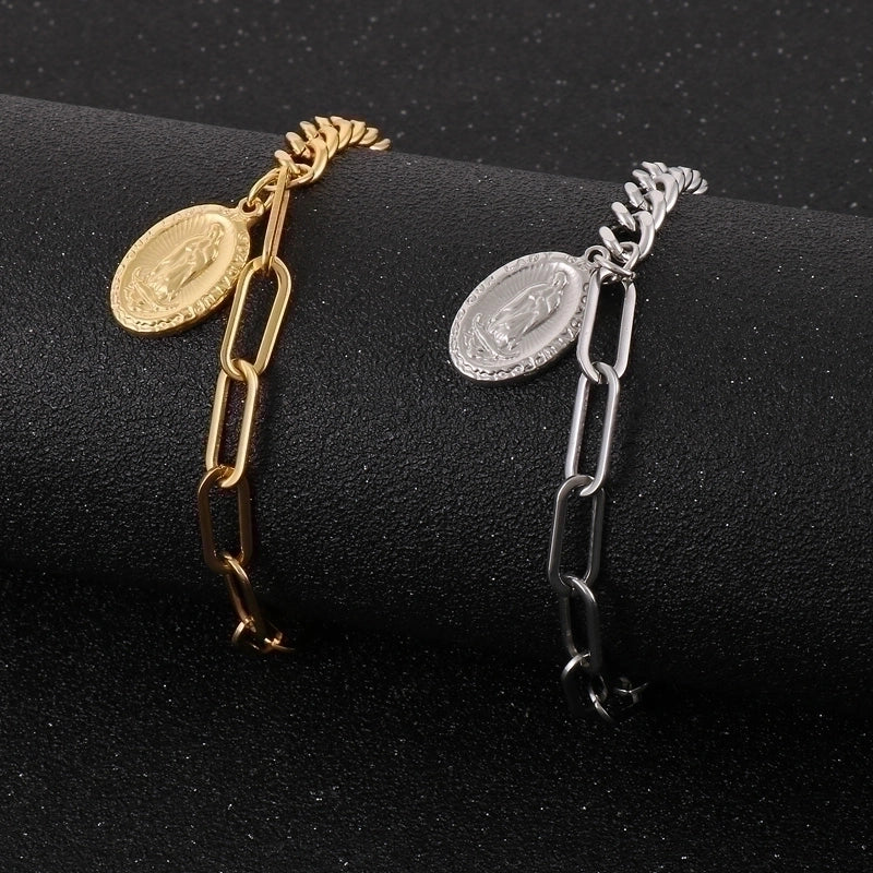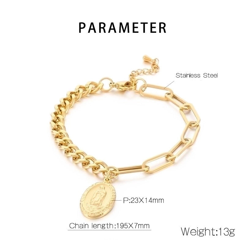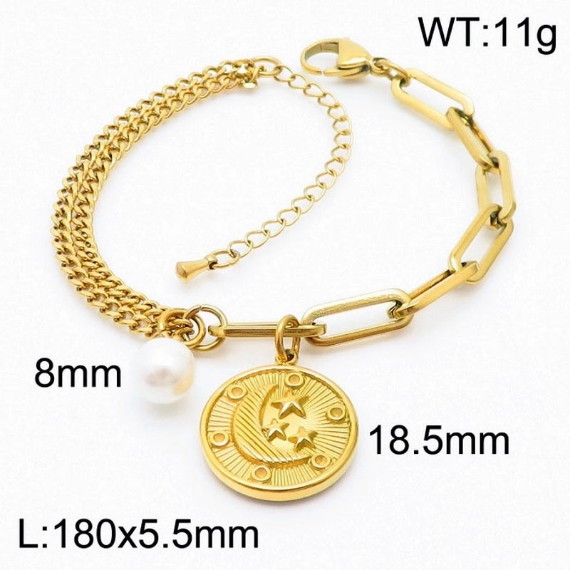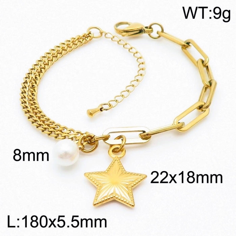 Minimalist Human Star Oval Stainless Steel 18K Gold Plated Bracelets In Bulk