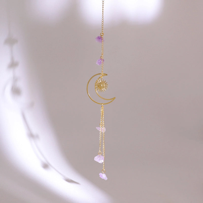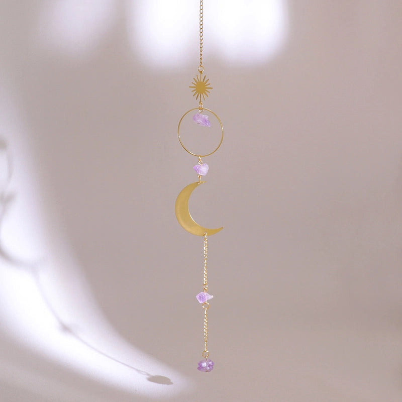 Minimalist Moon Floral Crystal Crystal Copper Suncatcher Wind Chime Wall Art