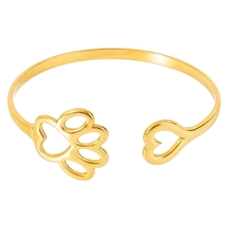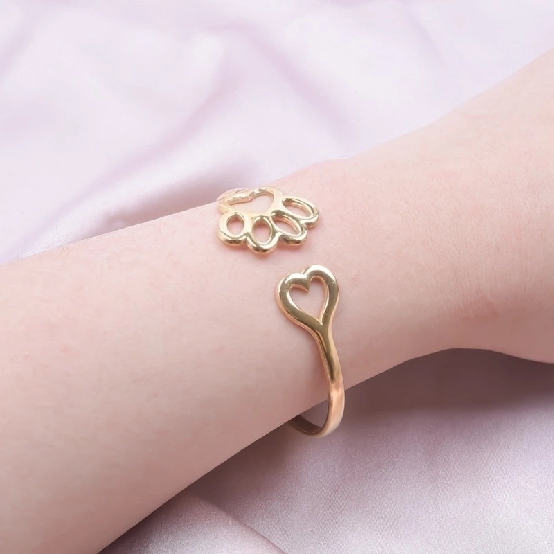 Minimalist Paw Print Heart Shape 304 Stainless Steel 18K Gold Plated Bangle In Bulk