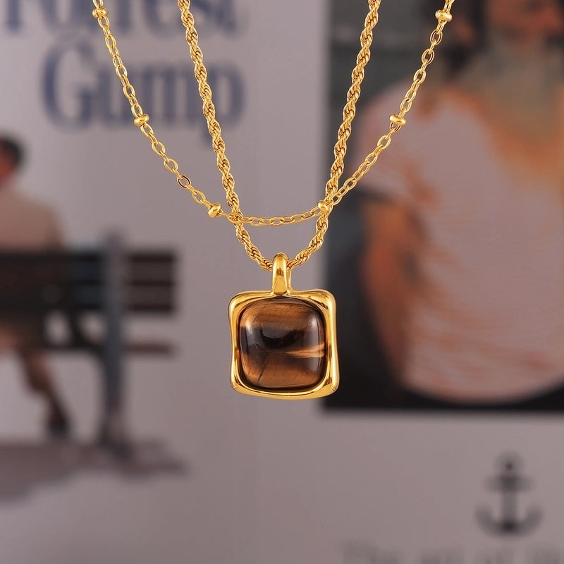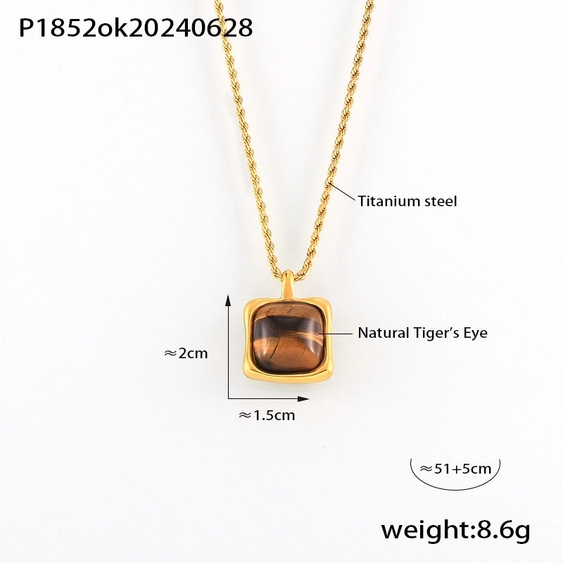 Minimalist Quadrilateral 304 Stainless Steel Tiger Eye Tiger Eye 18K Gold Plated Plating Inlay Pendant Necklace