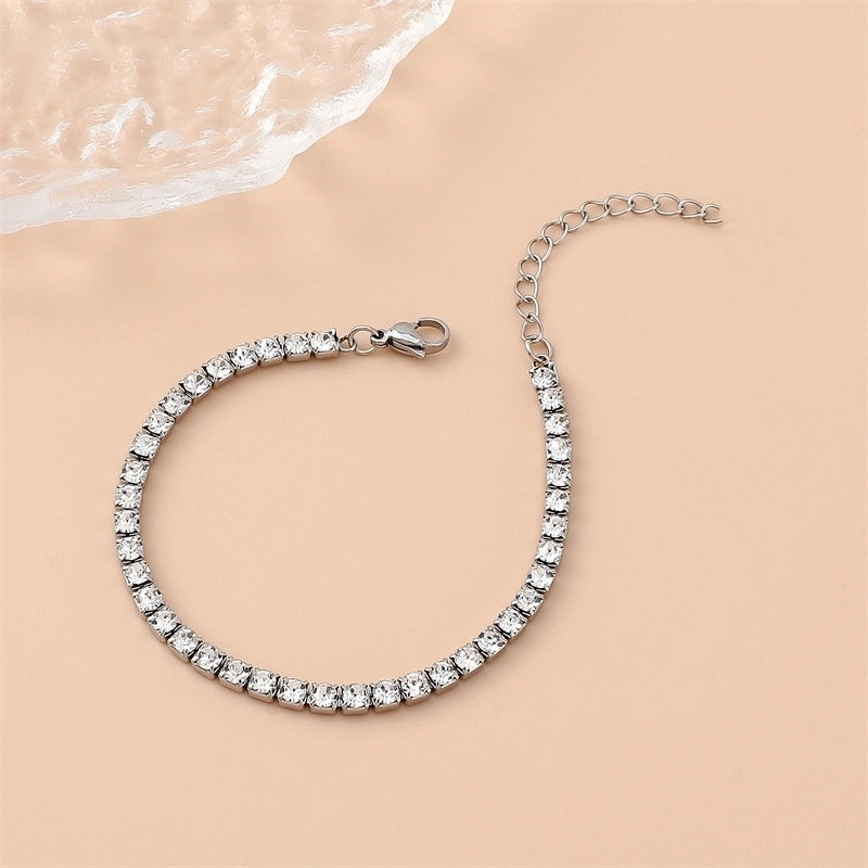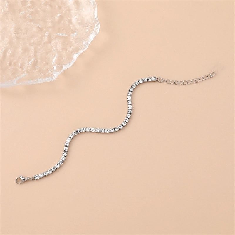 3 Pieces Minimalist Shiny Geometric 304 Stainless Steel Rhinestones Bracelets In Bulk