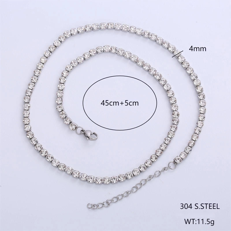 Minimalist Shiny Solid Color 304 Stainless Steel Rhinestones 18K Gold Plated Inlay Necklace