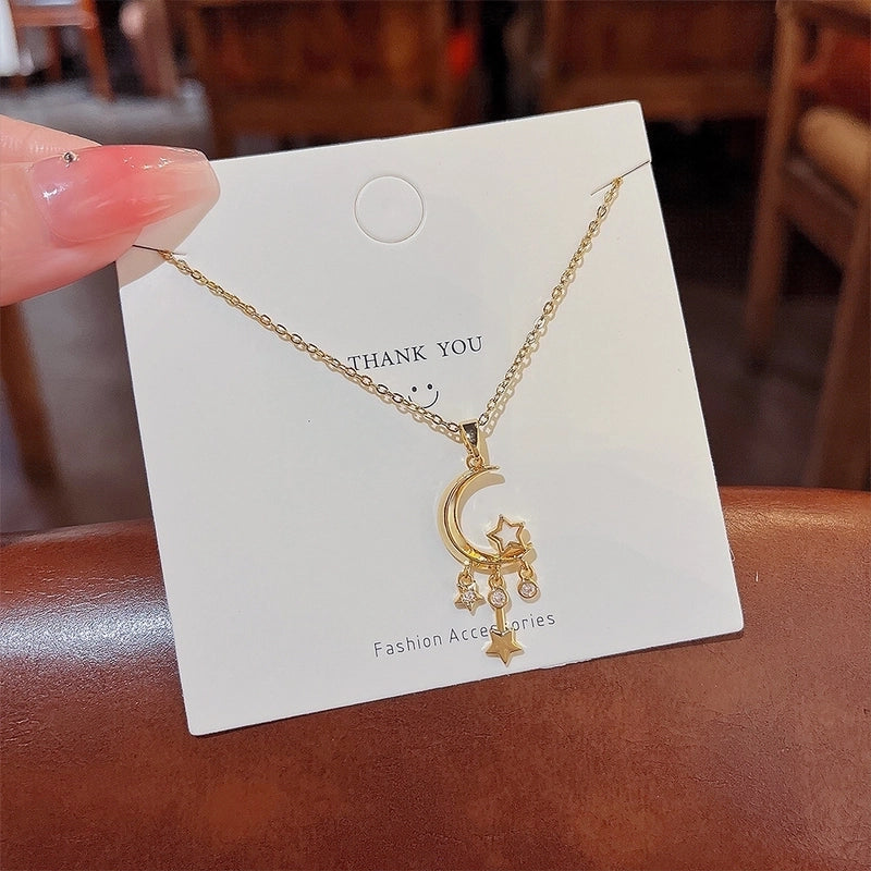 Minimalist Solid Color Titanium Steel Zircon Inlay Pendant Necklace