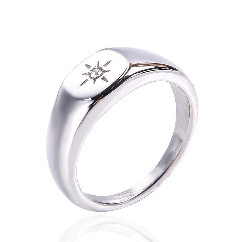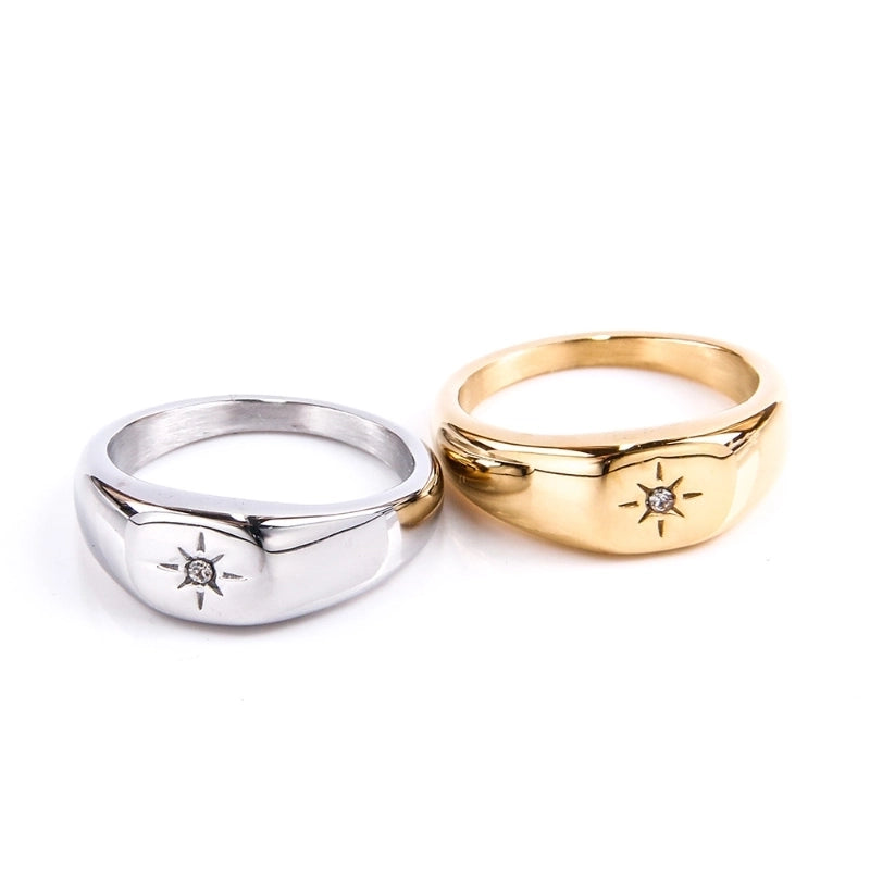 Minimalist Star Titanium Steel Plating Rhinestones 18K Gold Plated Women’s Rings