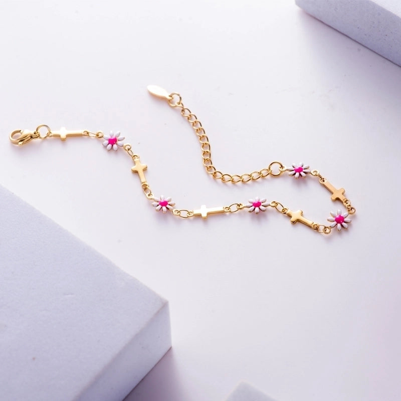 Minimalist Streetwear Cross Chrysanthemum 304 Stainless Steel Bracelets In Bulk