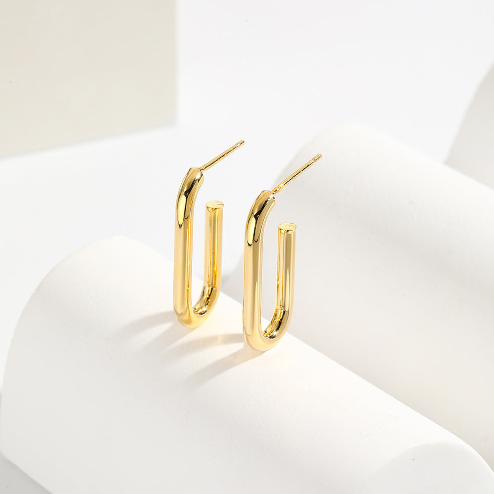 Minimalist Stripe Circle Geometric Zircon Electroplating Earrings