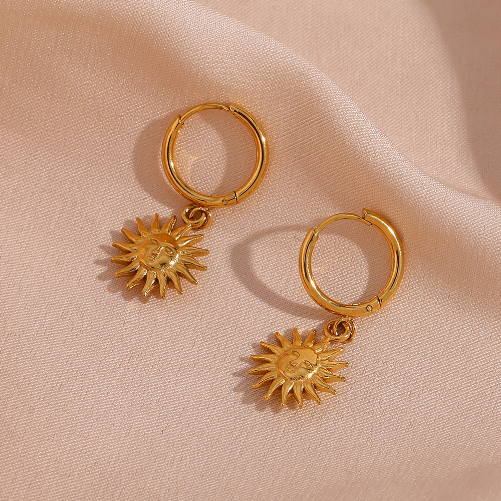 Minimalist Sun Geometric Stainless Steel 18K Gold Plated Earrings
