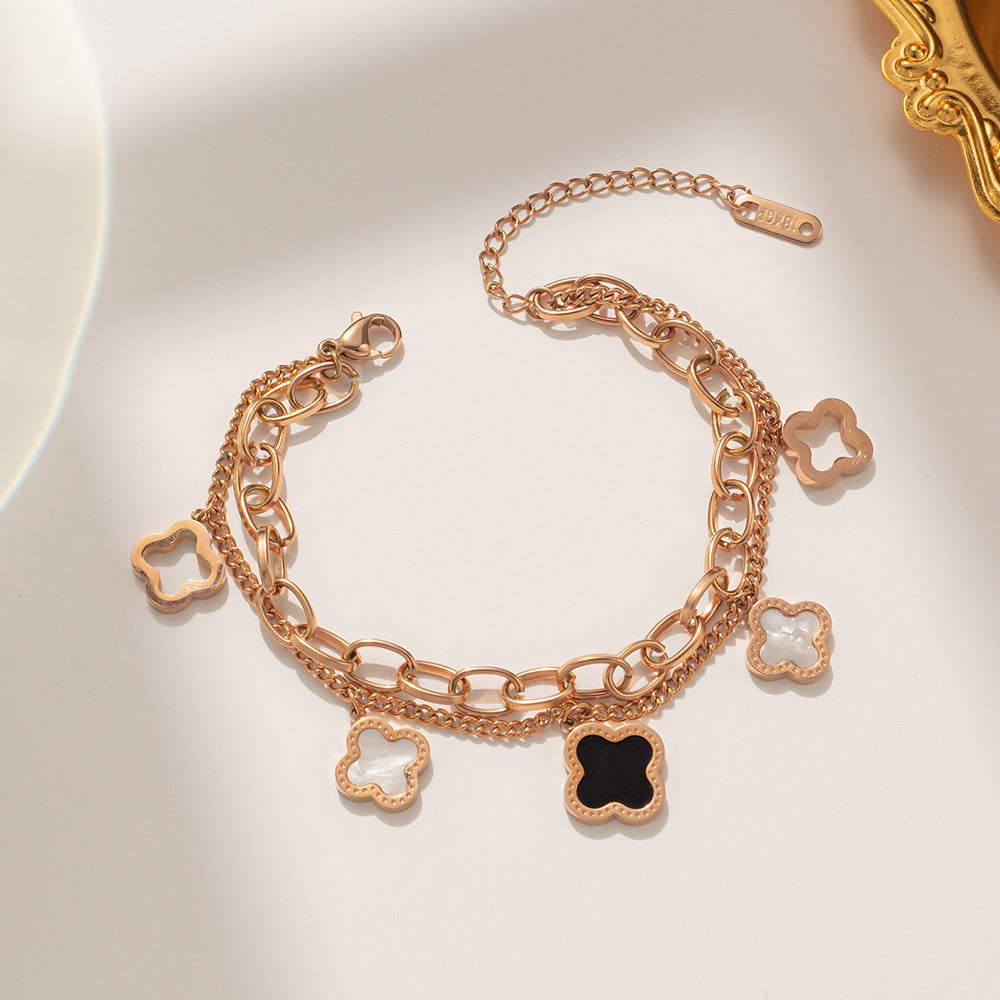 | Color | 972 Double layered Clover Bracelet Gold, 972 Double layered Clover Bracelet Rose Gold, 972 Double layered Clover Bracelet Silver  |