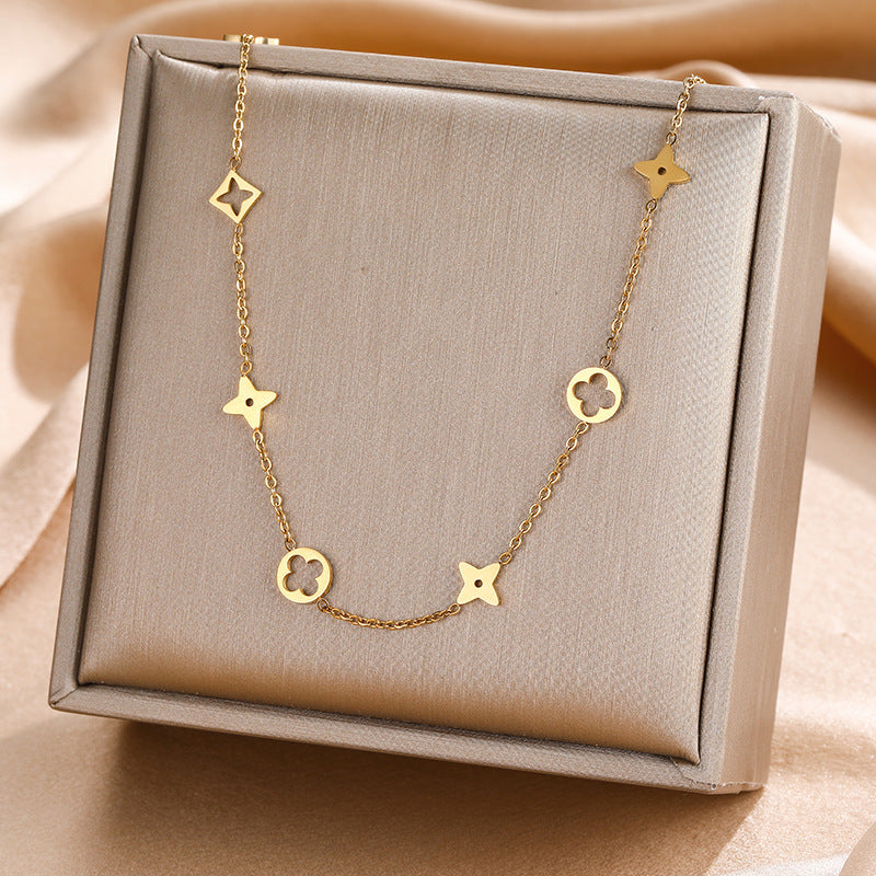| Color | 538 Hollow Clover Necklace Gold, 701 Hollow Clover Bracelet Gold |