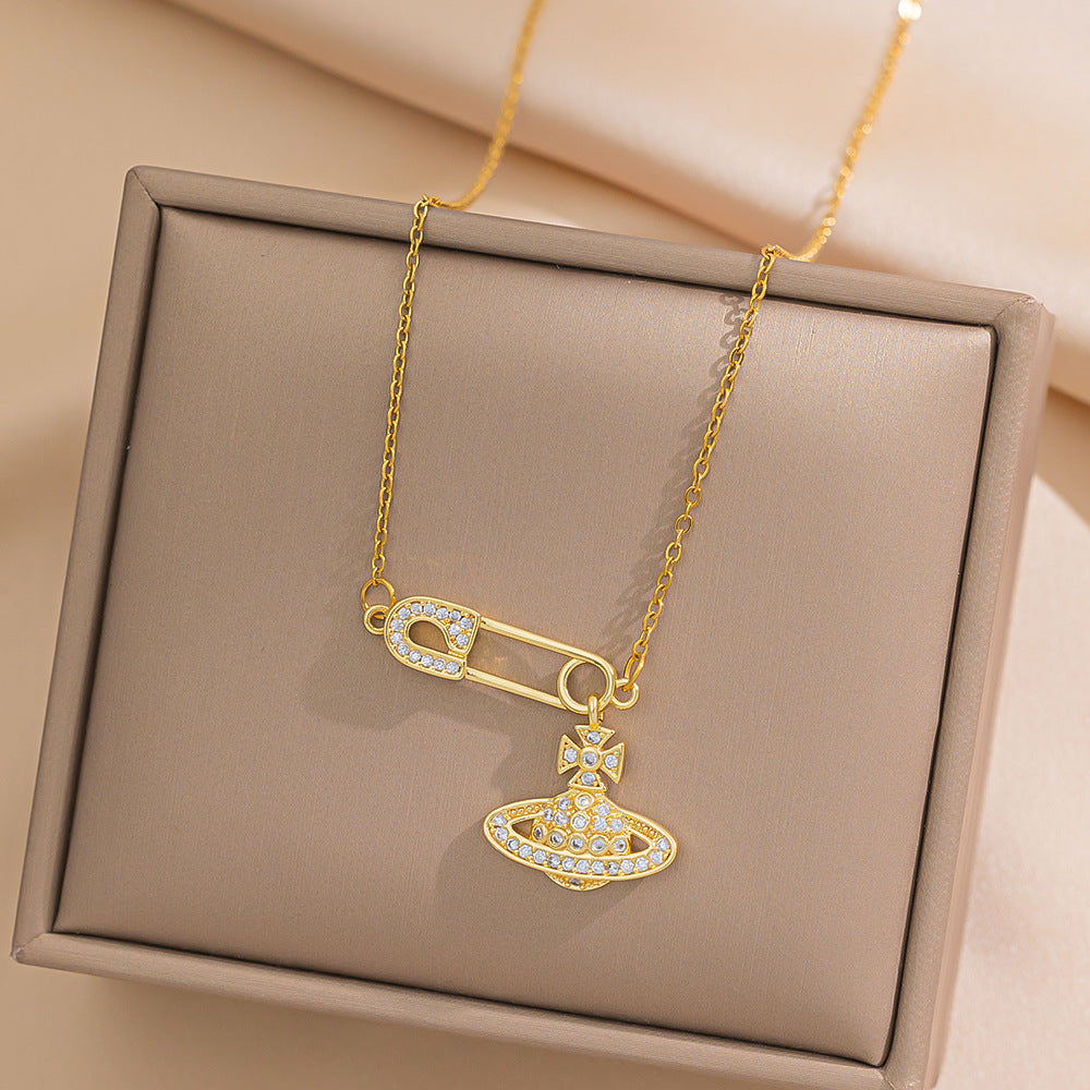 | Color | 383 Queen Mother Saturn necklace gold, 383 Queen Mother Saturn necklace in steel color |