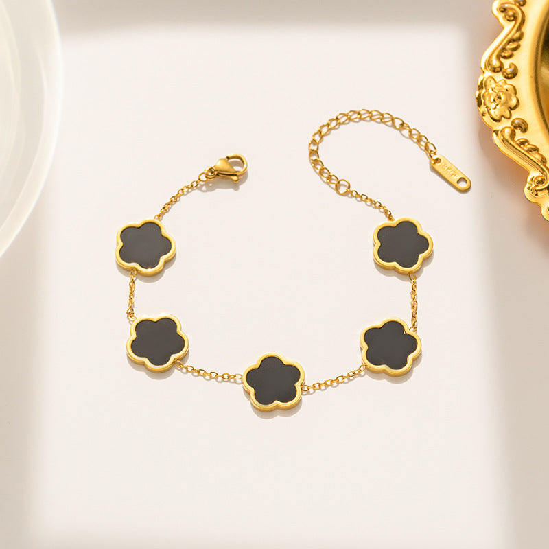 Moderate Luxury Women Rose Geometric Titanium Steel 18K Gold Plated Bracelets