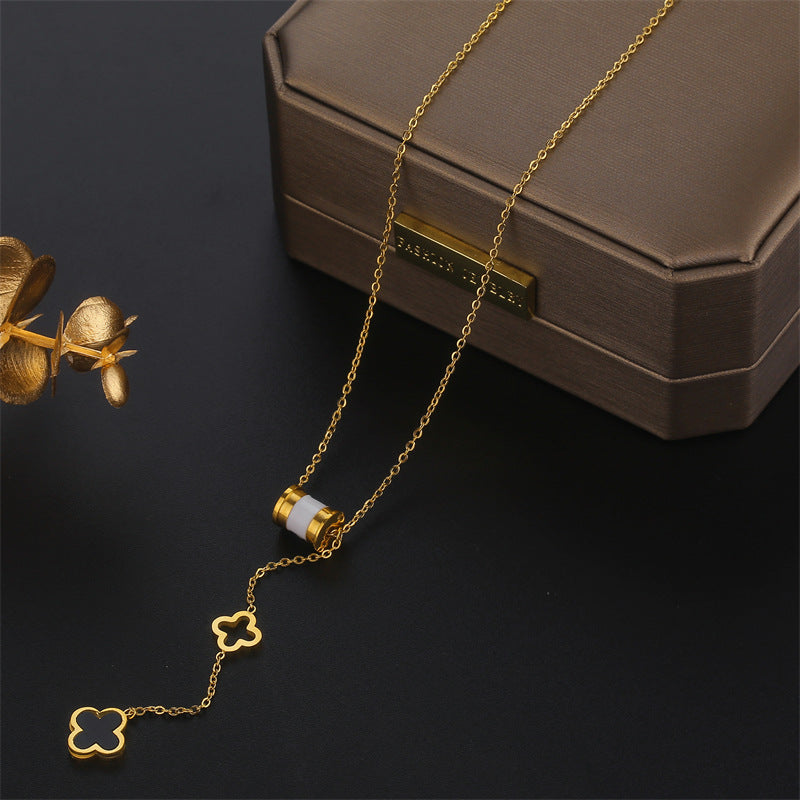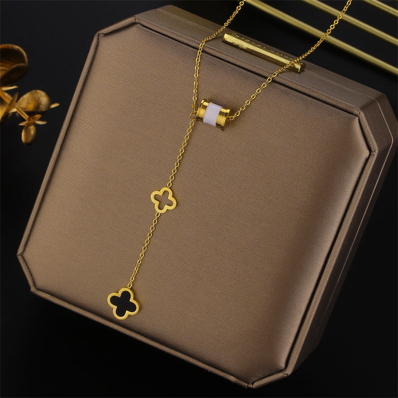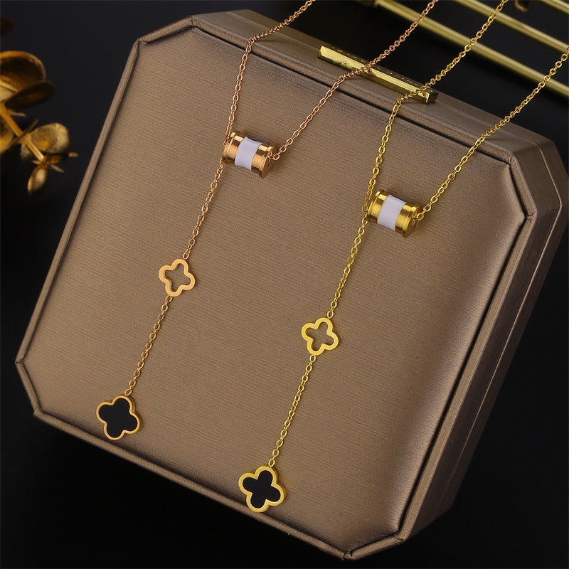 Multiple Four-Leaf Clover Necklaces For Women Titanium Steel Pendants Cold Style Korean Clavicle Chain Disco Niche Hip-Hop