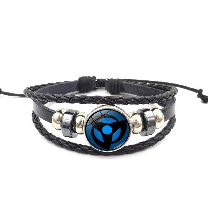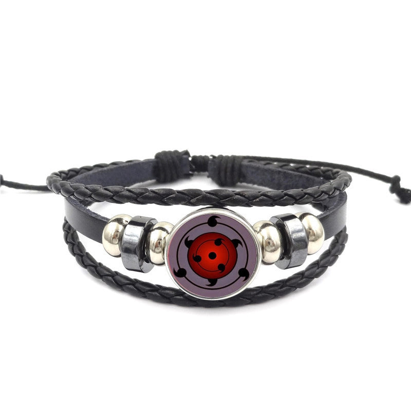 Naruto Writing Wheel Eye Leather Bracelet For Men And Women Students Animation Peripheral Retro Punk Woven Hand Rope Hand Jewelry