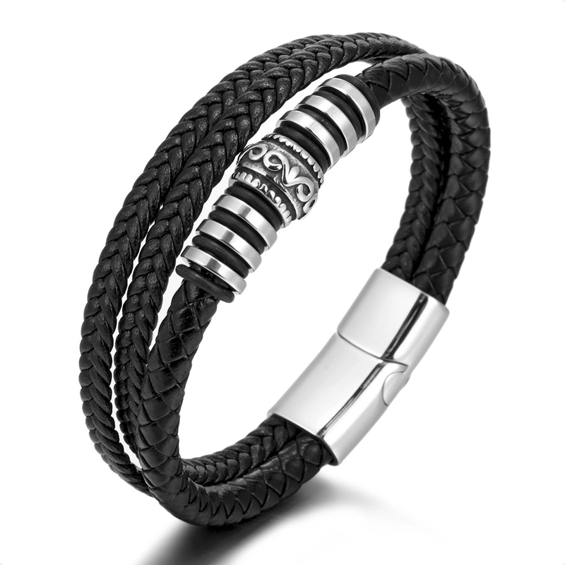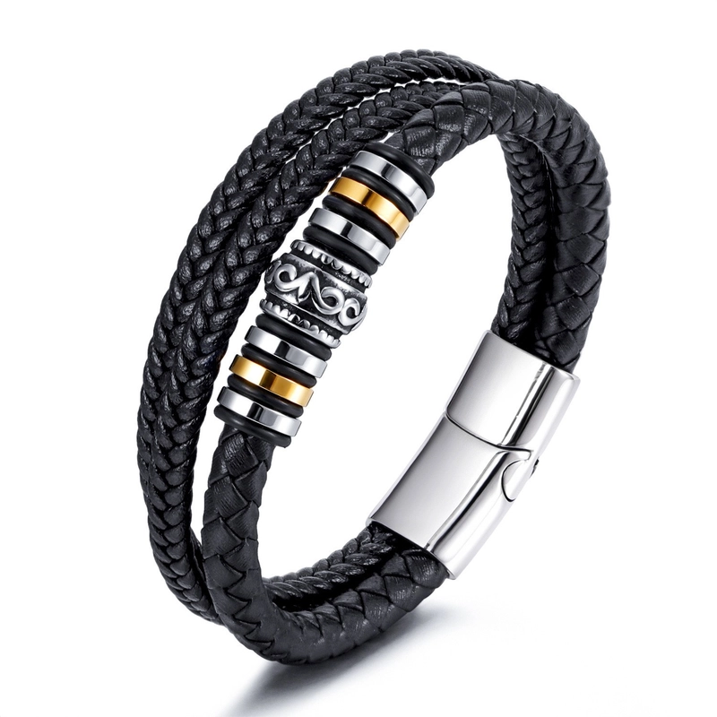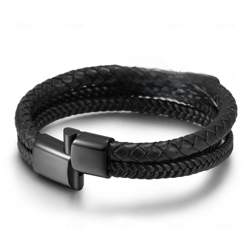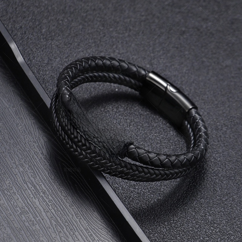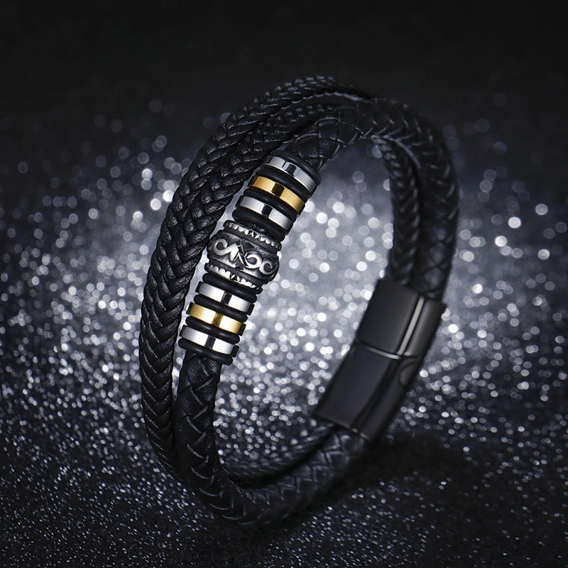 National Style Jewelry Stainless Steel Bracelet Men’s Multi-layer Woven Leather Rope Titanium Steel Magnetic Buckle Bracelet