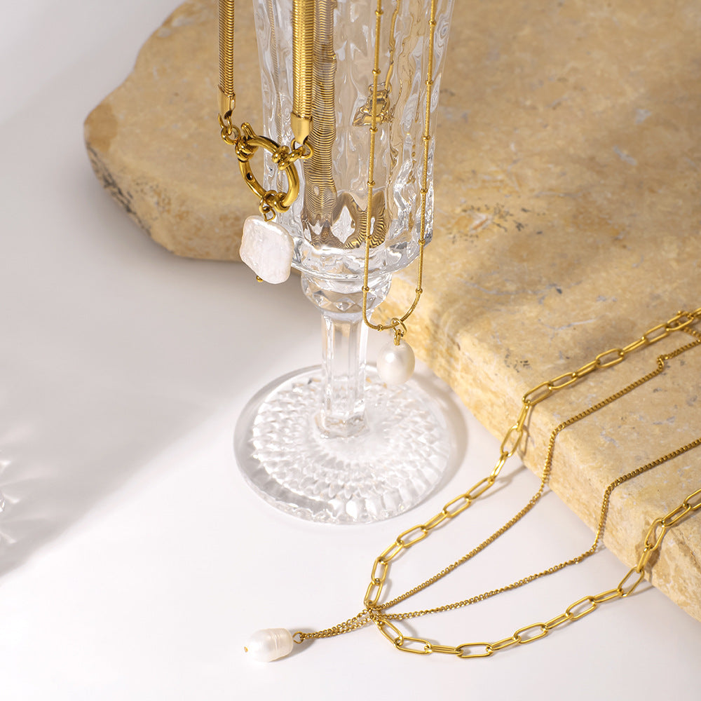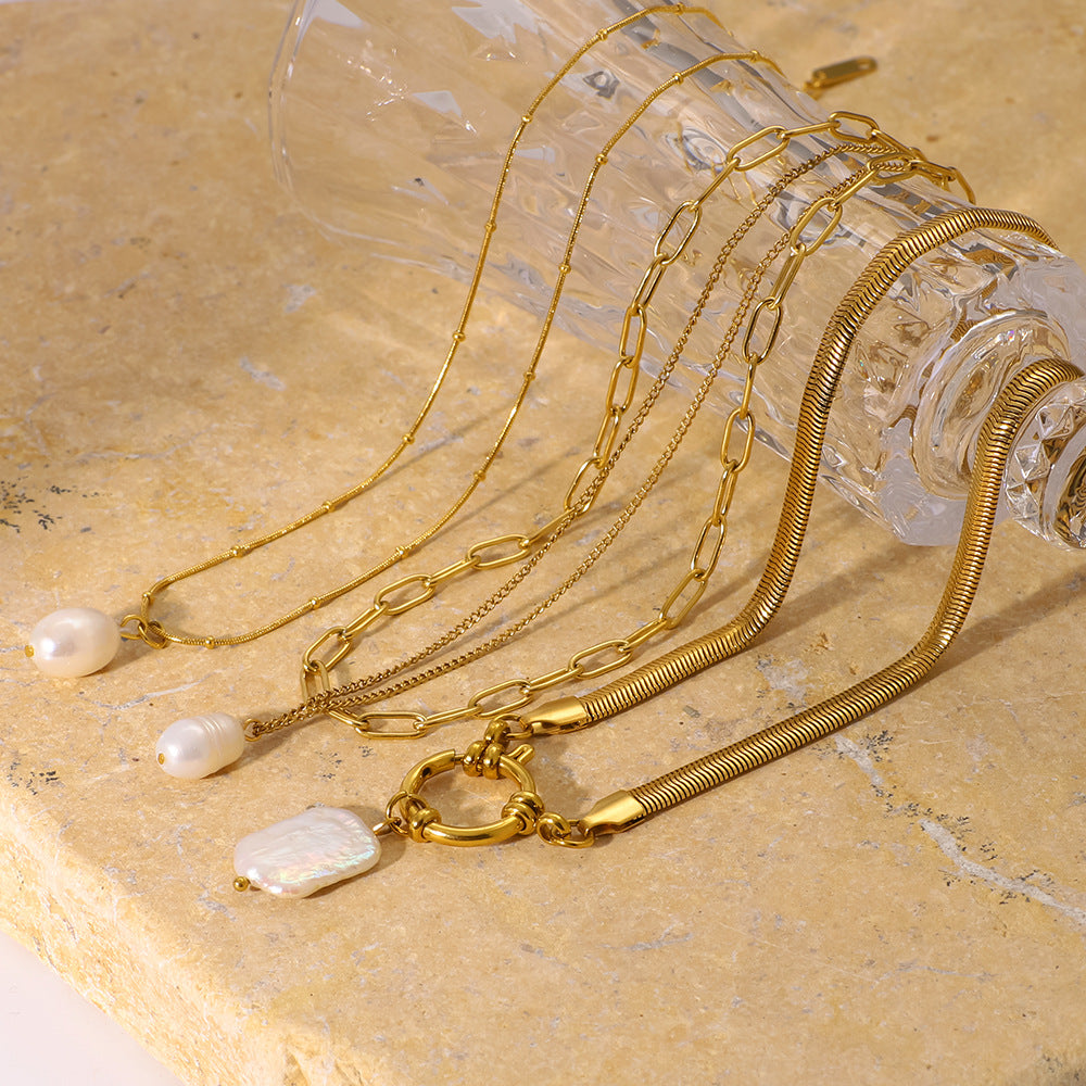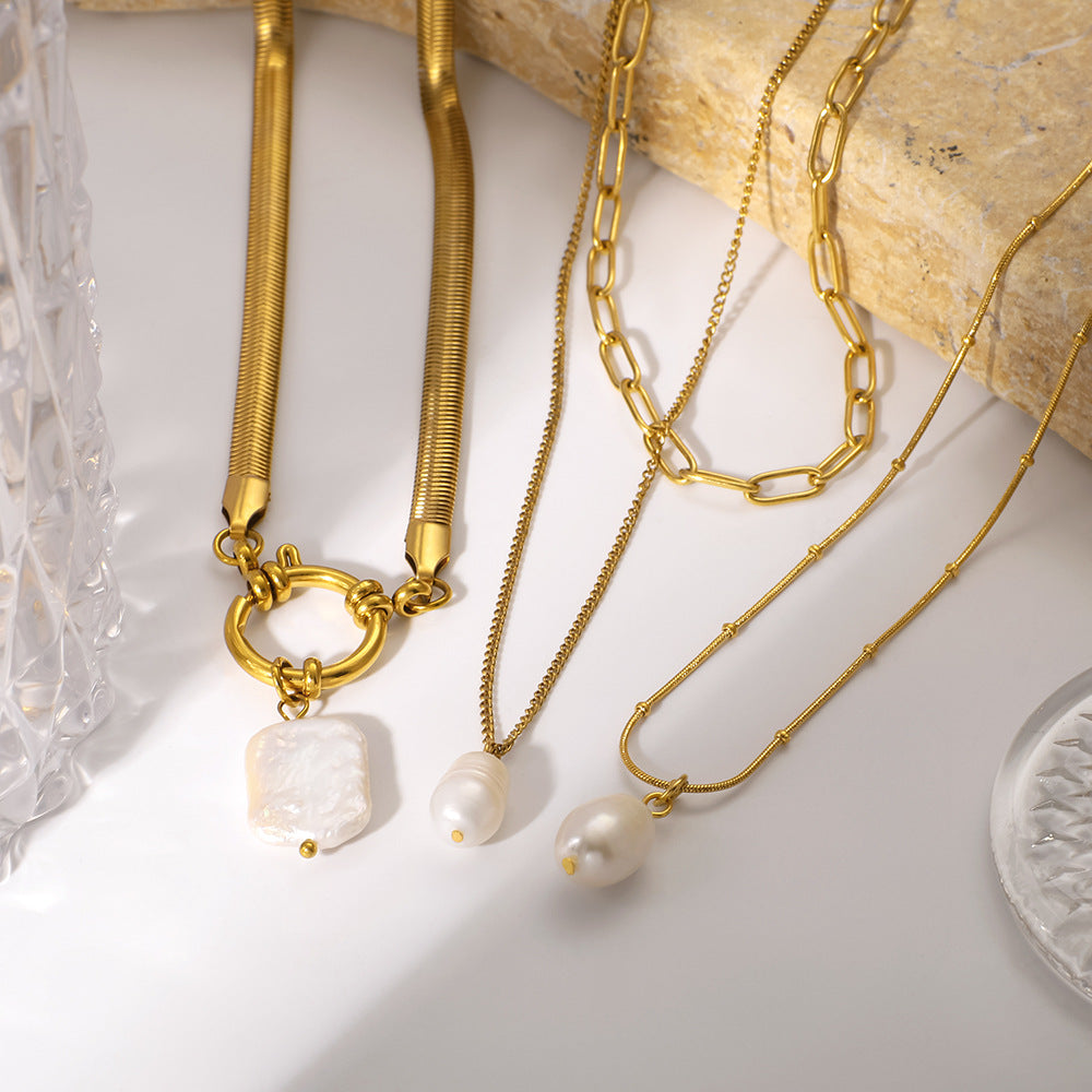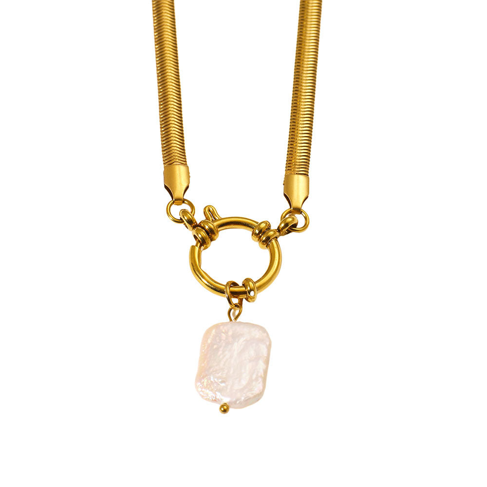 Natural Pearl Personality French Female Stainless Steel Necklace Clavicle Necklace Romantic Necklace Gift