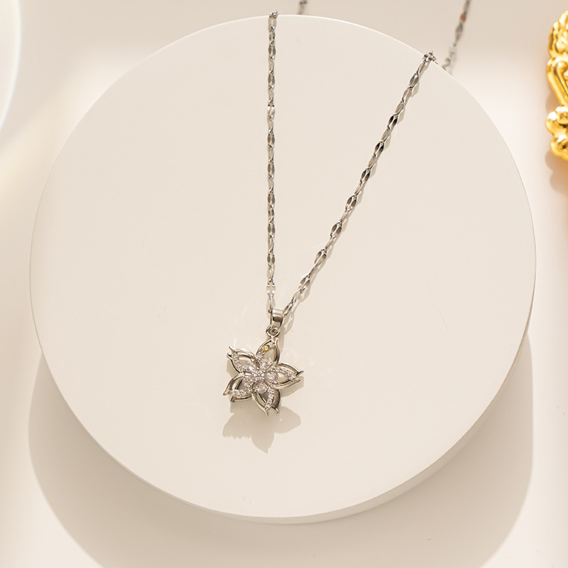 Natural Petal Geometric Titanium Steel 18K Gold Plated Necklaces