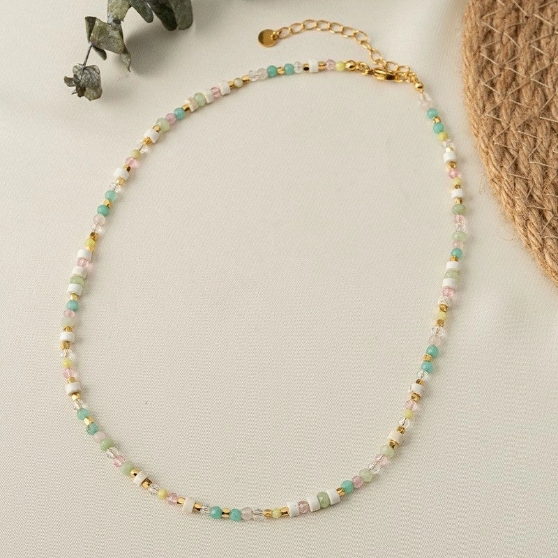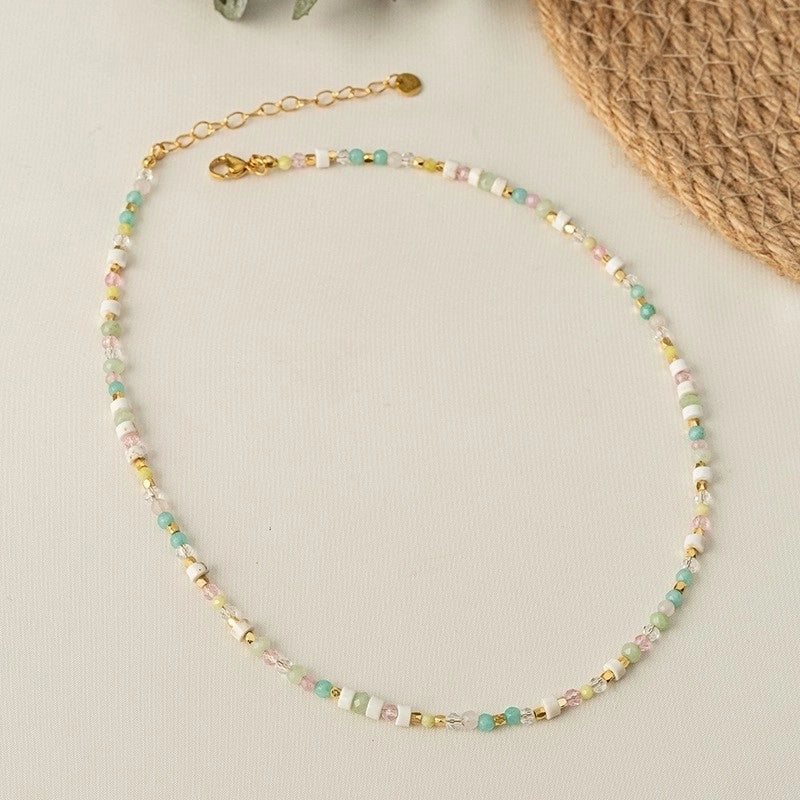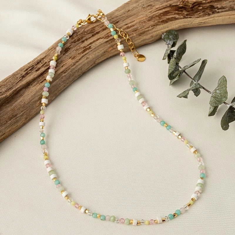 Natural Stone Copper 18K Gold Plated Beaded Irregular Round Necklace