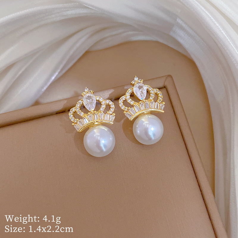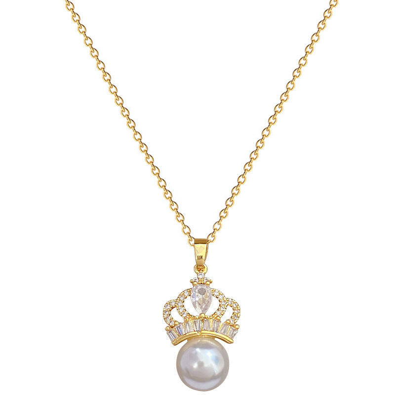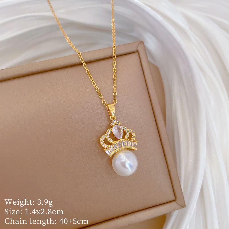 Necklace Earring Set Full Diamond Pearl Crown Personalized Banquet Earrings And Pendant Set