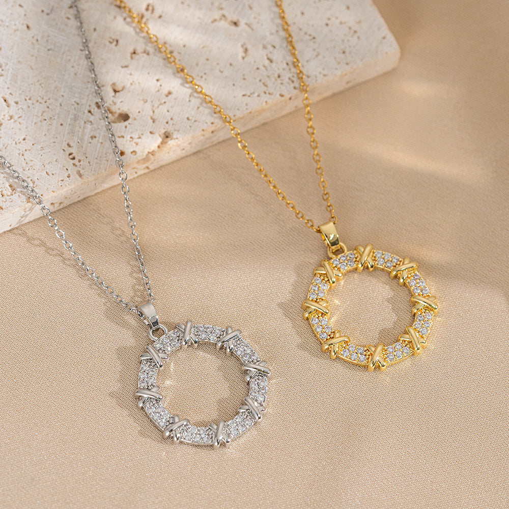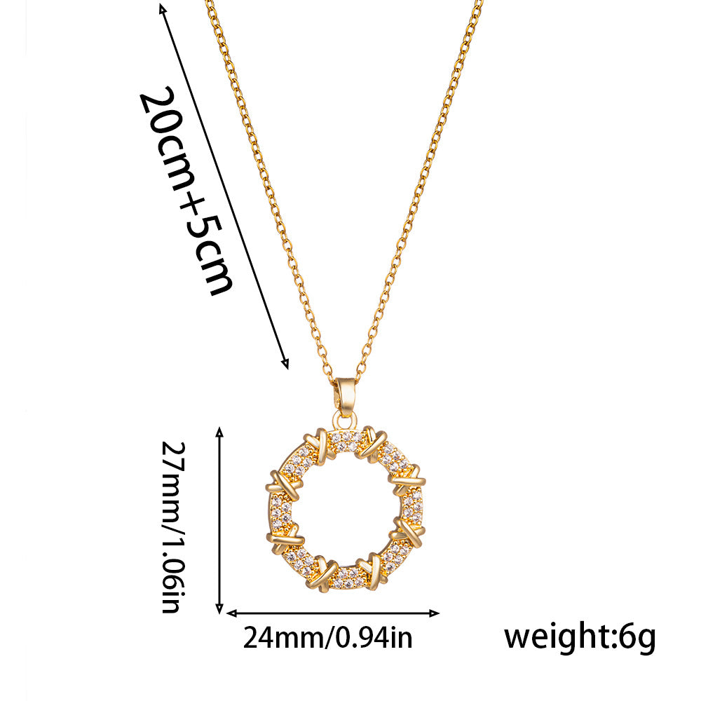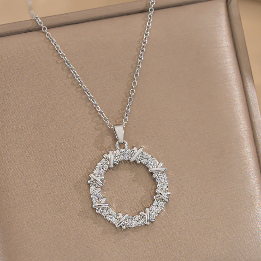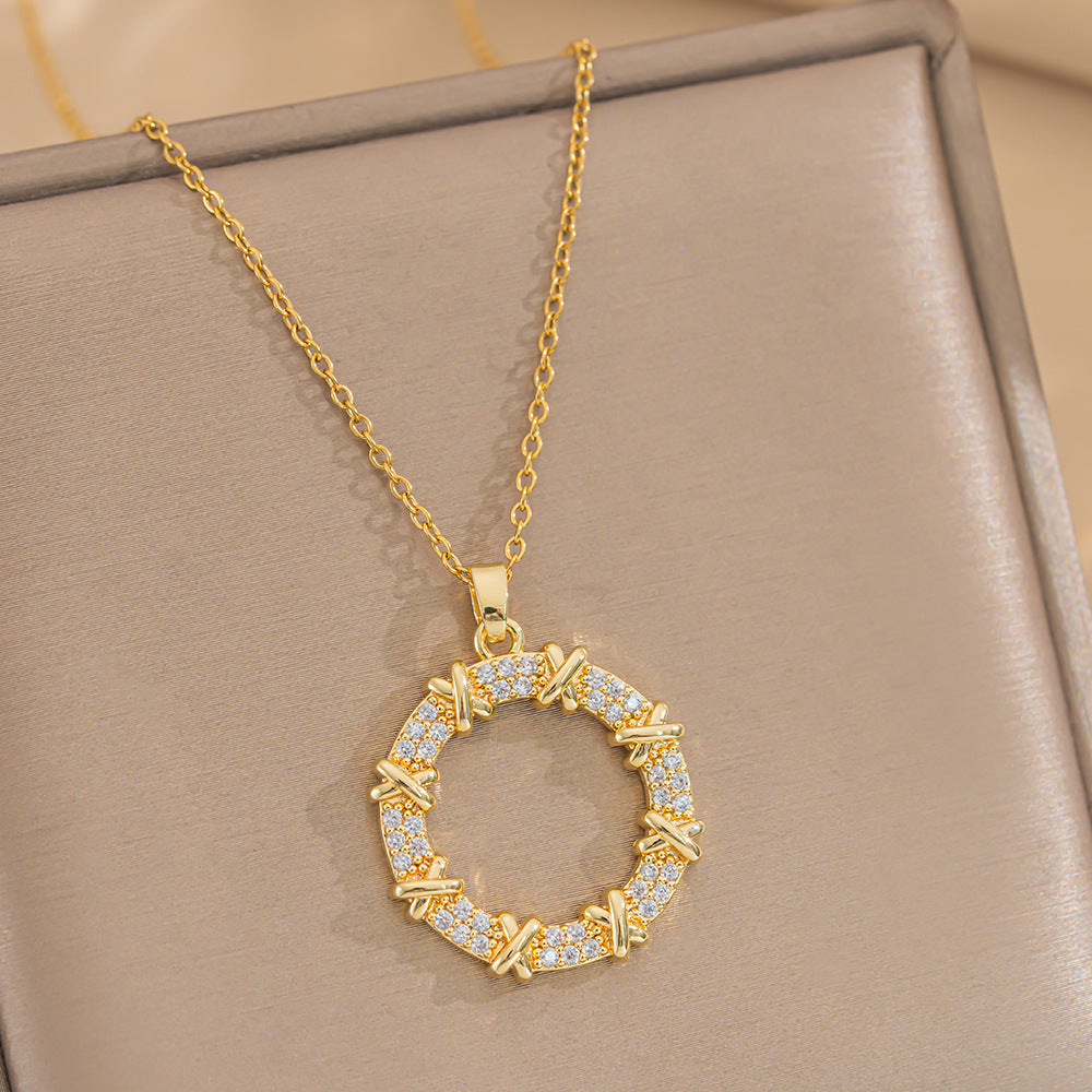 Necklace Women Japanese And Korean Style Korean Trend Niche Zircon Donut Ins Style Titanium Steel Necklace