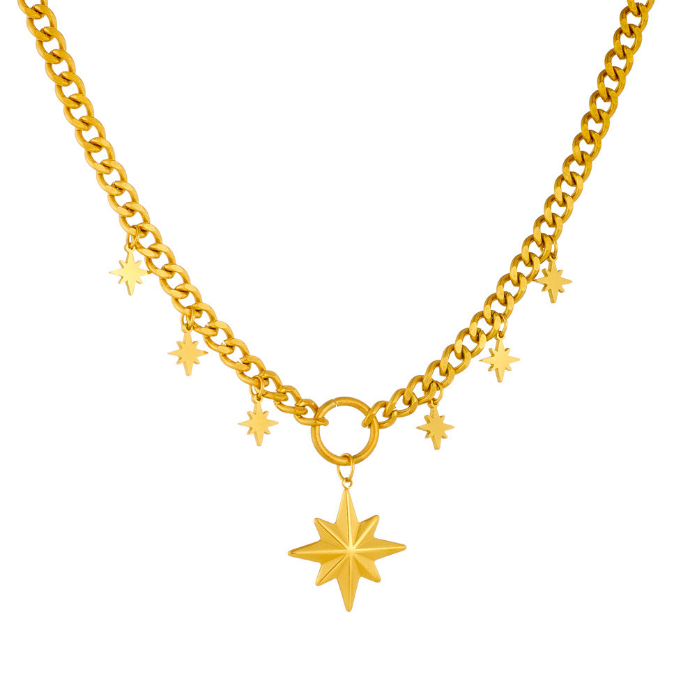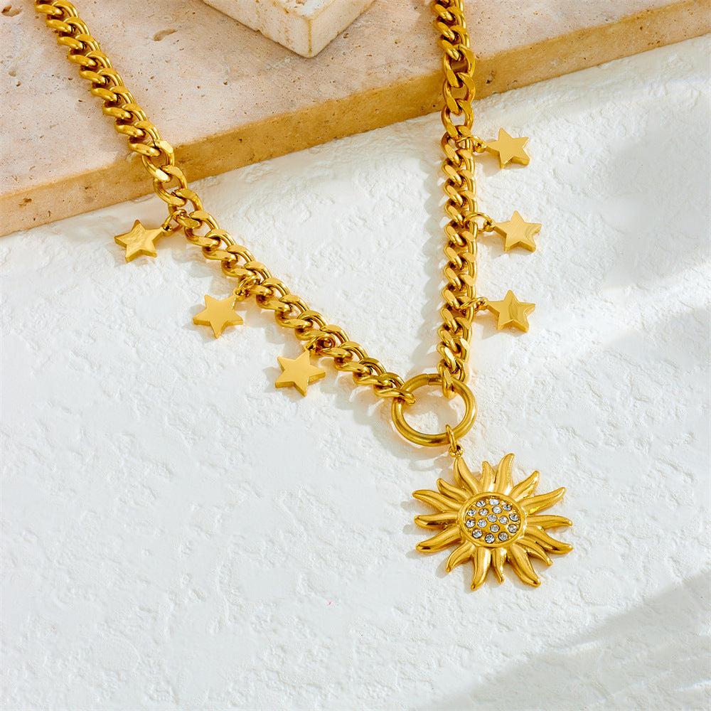 Neutral Style Stainless Steel Thick Chain Necklace Star Diamond Wing Sun Pendant Sweater Chain