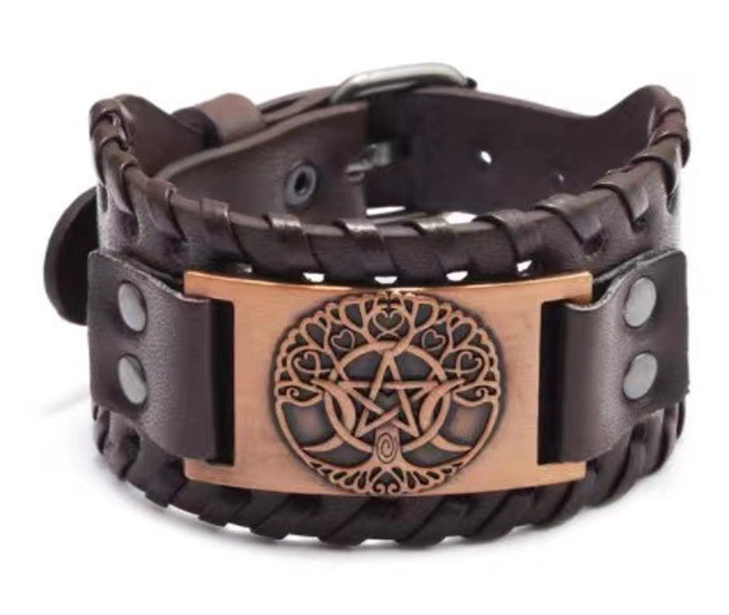 New Arrival Lucky Bracelet Handmade Top Layer Leather Bracelet Double-Layer Embossed Metal Leather Bracelet