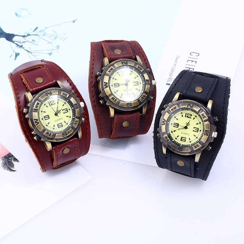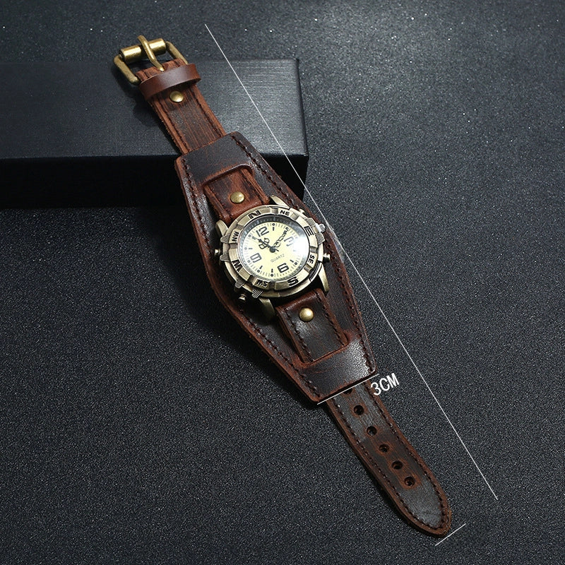 New Men’s Watch Vintage Cowhide Bracelet Watch Men’s Jewelry Genuine Leather Wide Leather Watch