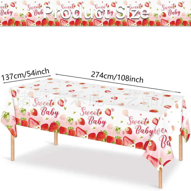 | Color | Strawberry Tablecloth 137*274, Strawberry paper Cup 10 Pack, Pink knife 10 pack, Pink fork 10 Pack, Pink spoon 10 Pack, Strawberry 7 inch plate 10 Pack, Pink straw 24 Pack, Strawberry 9 inch plate 10 Pack, Strawberry tissue 25 Pack, New strawberry tablecloth 137*274 |