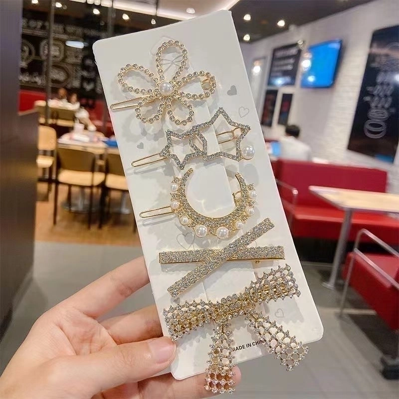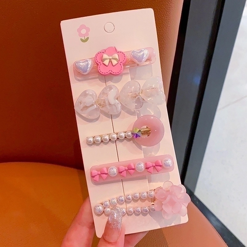 New Rhinestone Pearl Hairpin Set Small Fresh Little Girl’s Side Clip Hair Accessories Internet Celebrity Children’s Headwear Hairpin Accessories