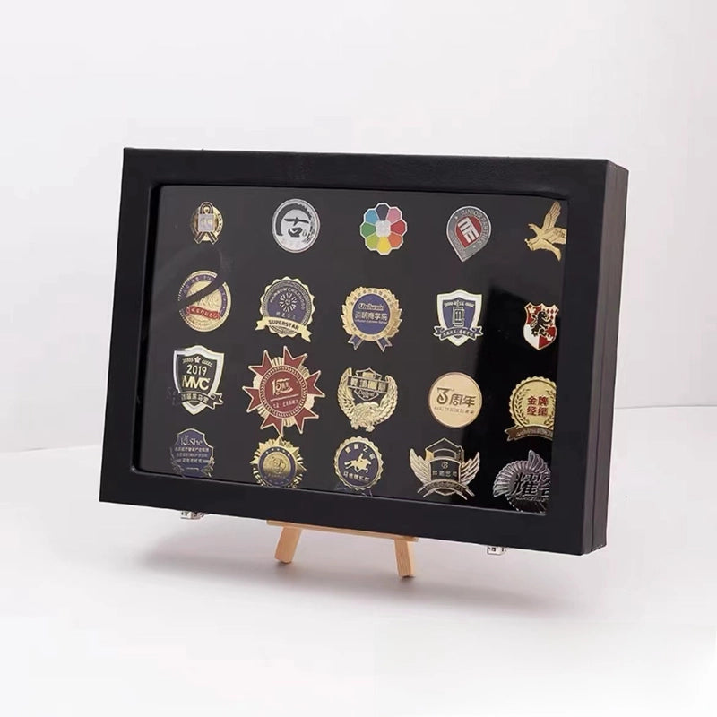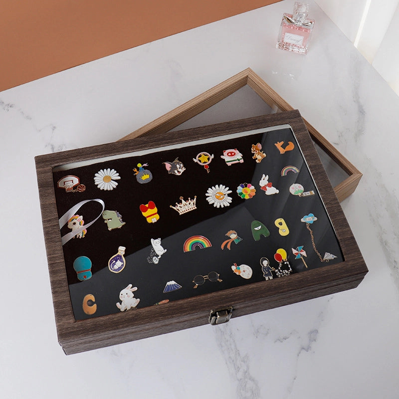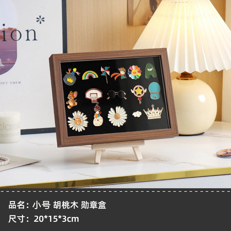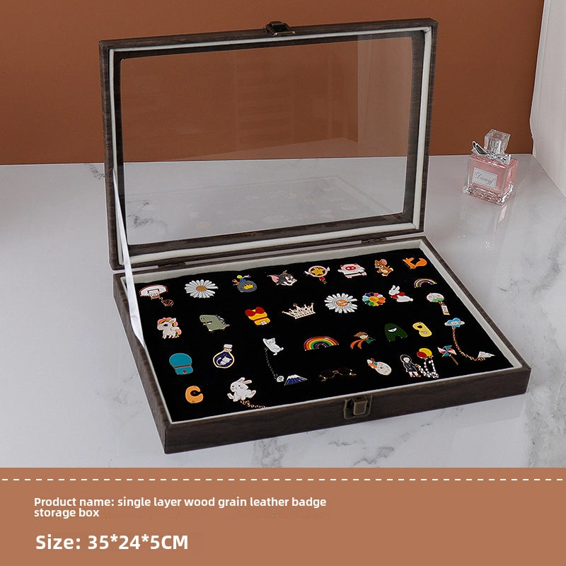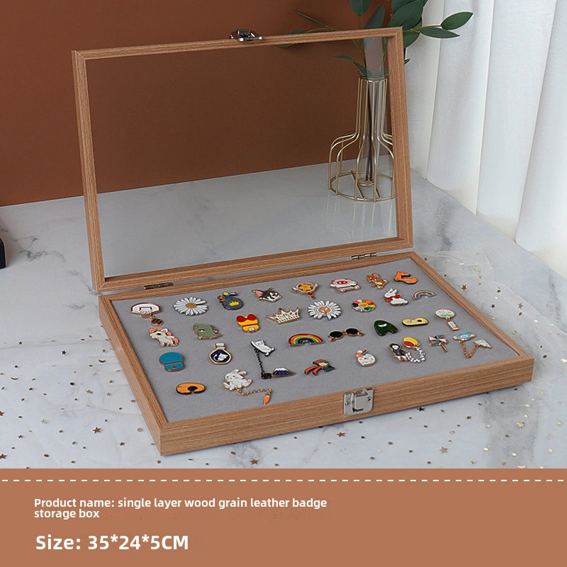 New Wood Grain Badge Storage Box Transparent Dustproof Cartoon Medal Jewelry Box Large Capacity Brooch Display Box