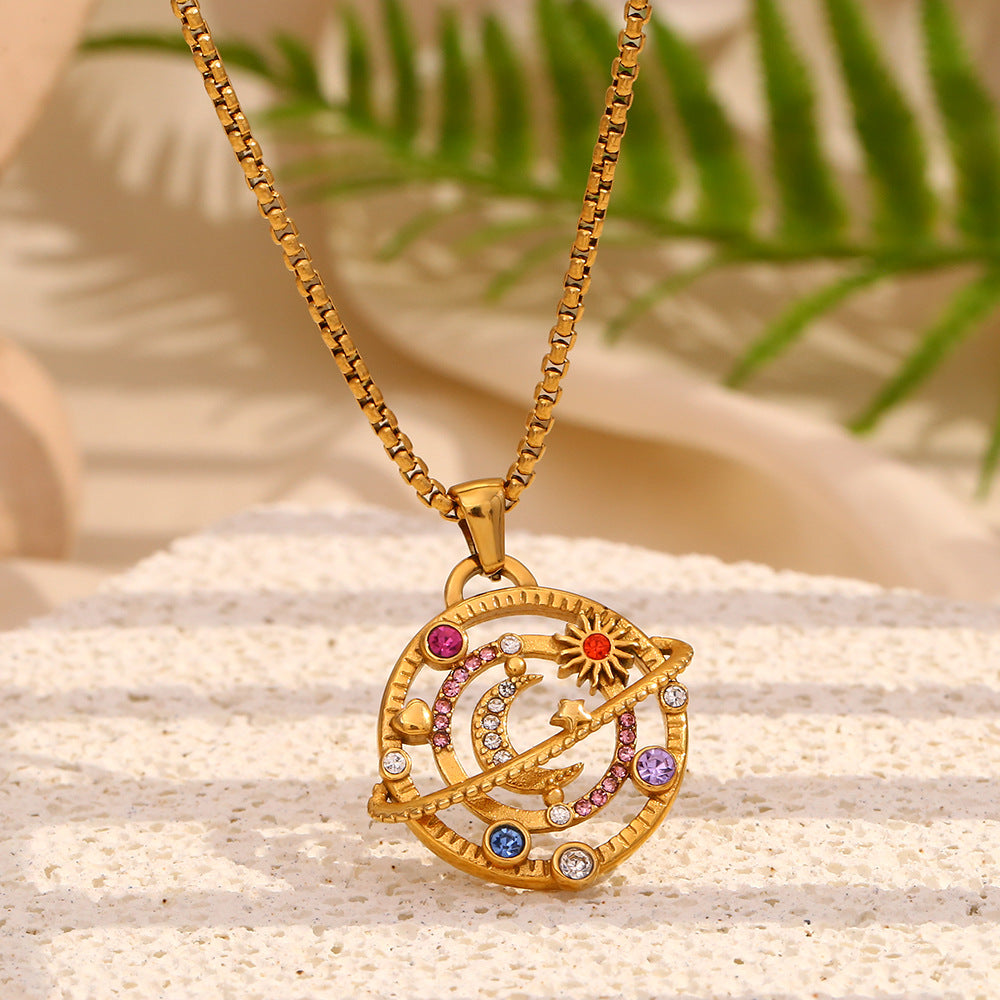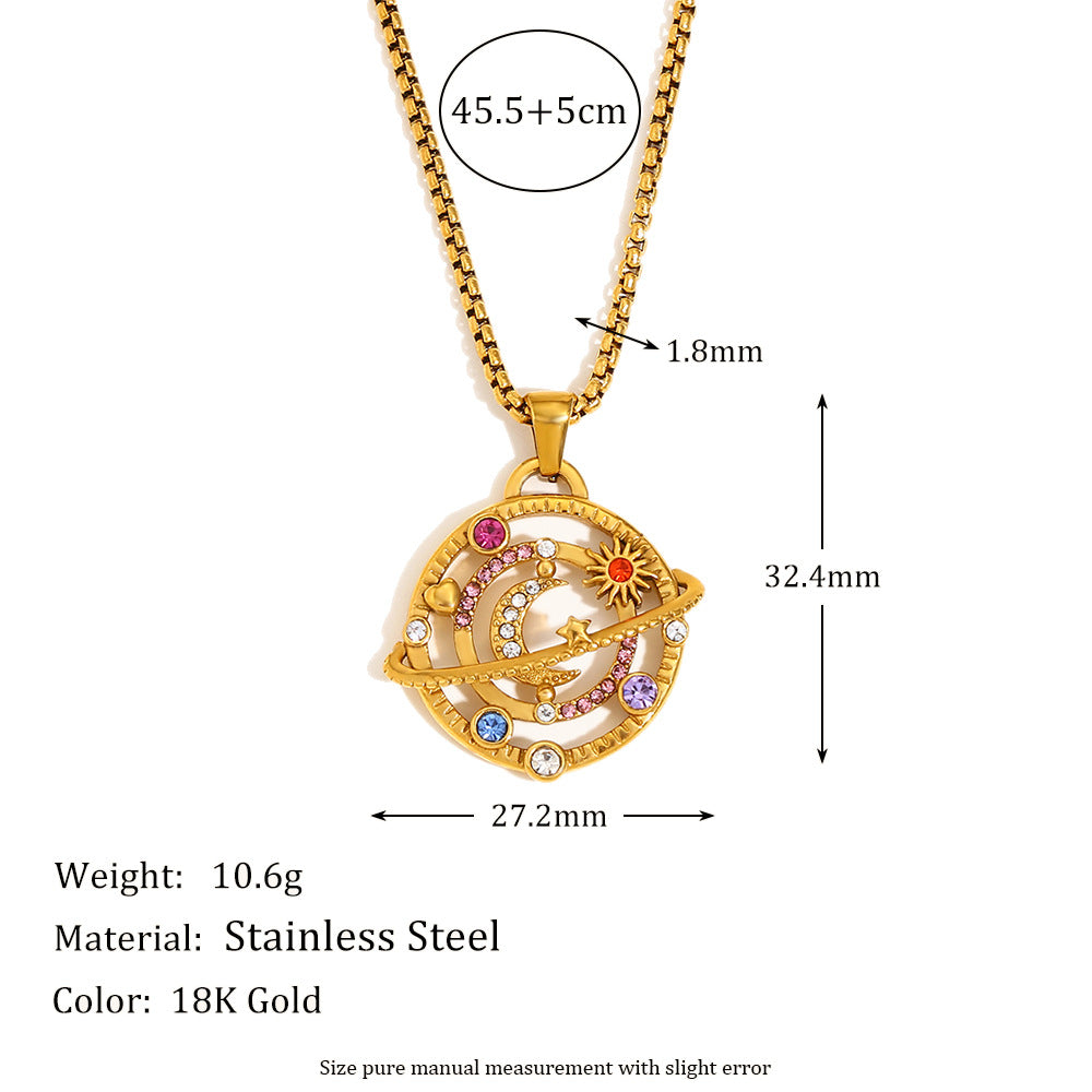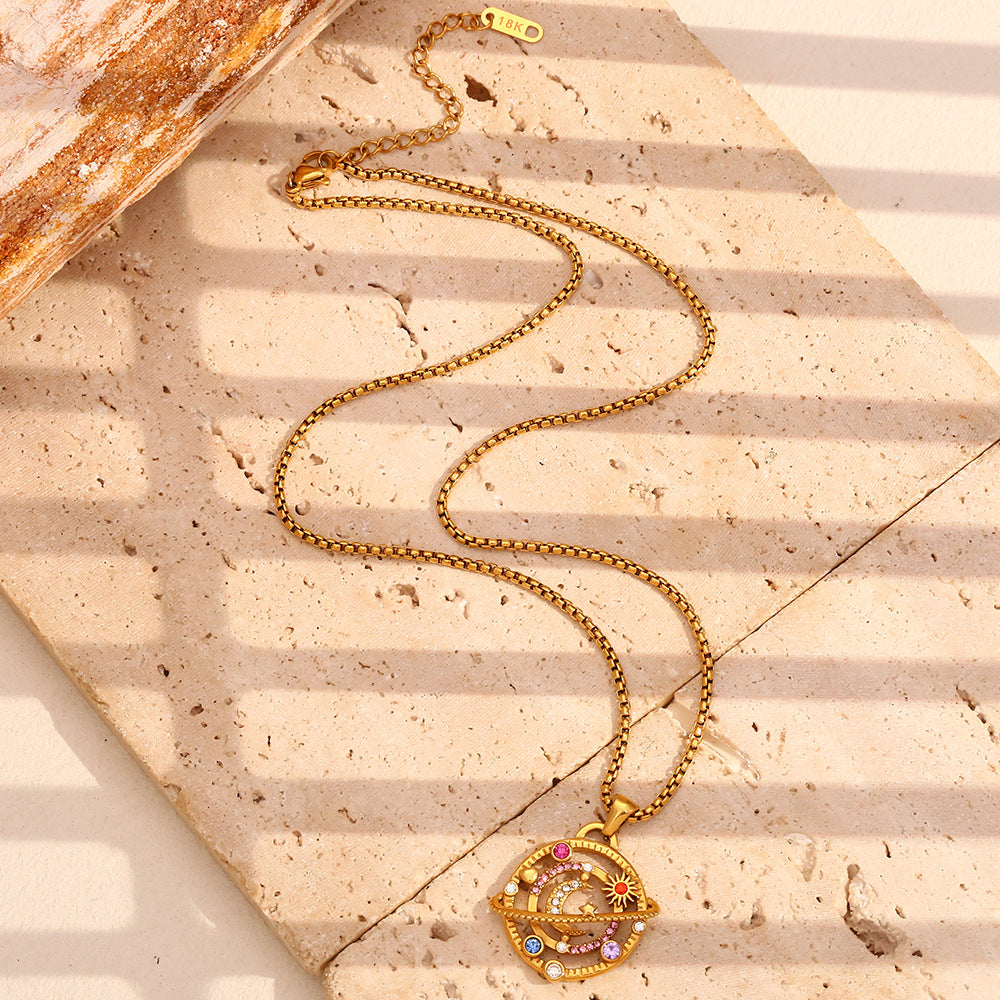 Niche Design Personalized High-End Pendant Stainless Steel Plated 18K Gold Diamond Compass Pendant Necklace Female