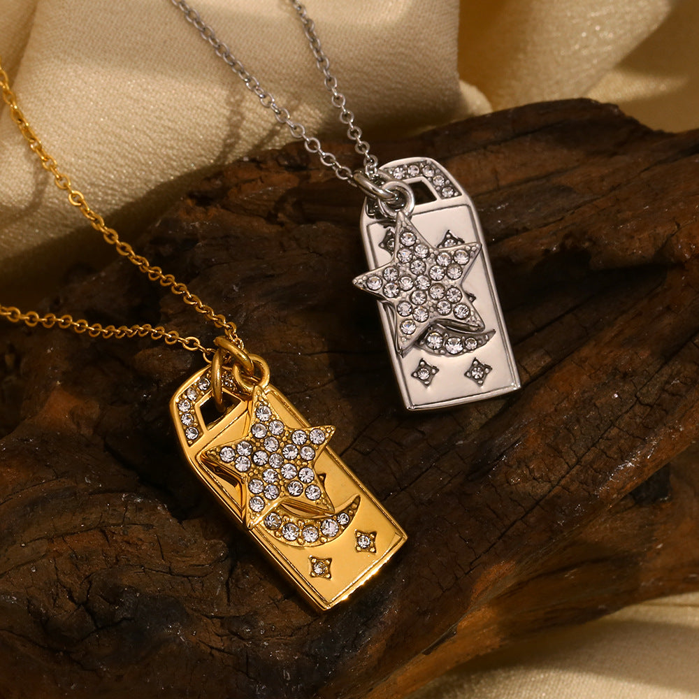 | Color | Square Star Pendant Necklace-Gold, Square Star Pendant Necklace-Steel Color |