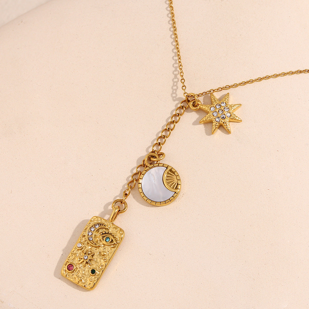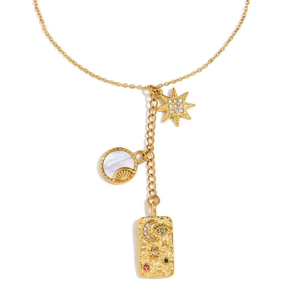 Niche High-End Pendant Stainless Steel 18K Gold Plated Personalized Tassel Square Pendant Necklace For Women