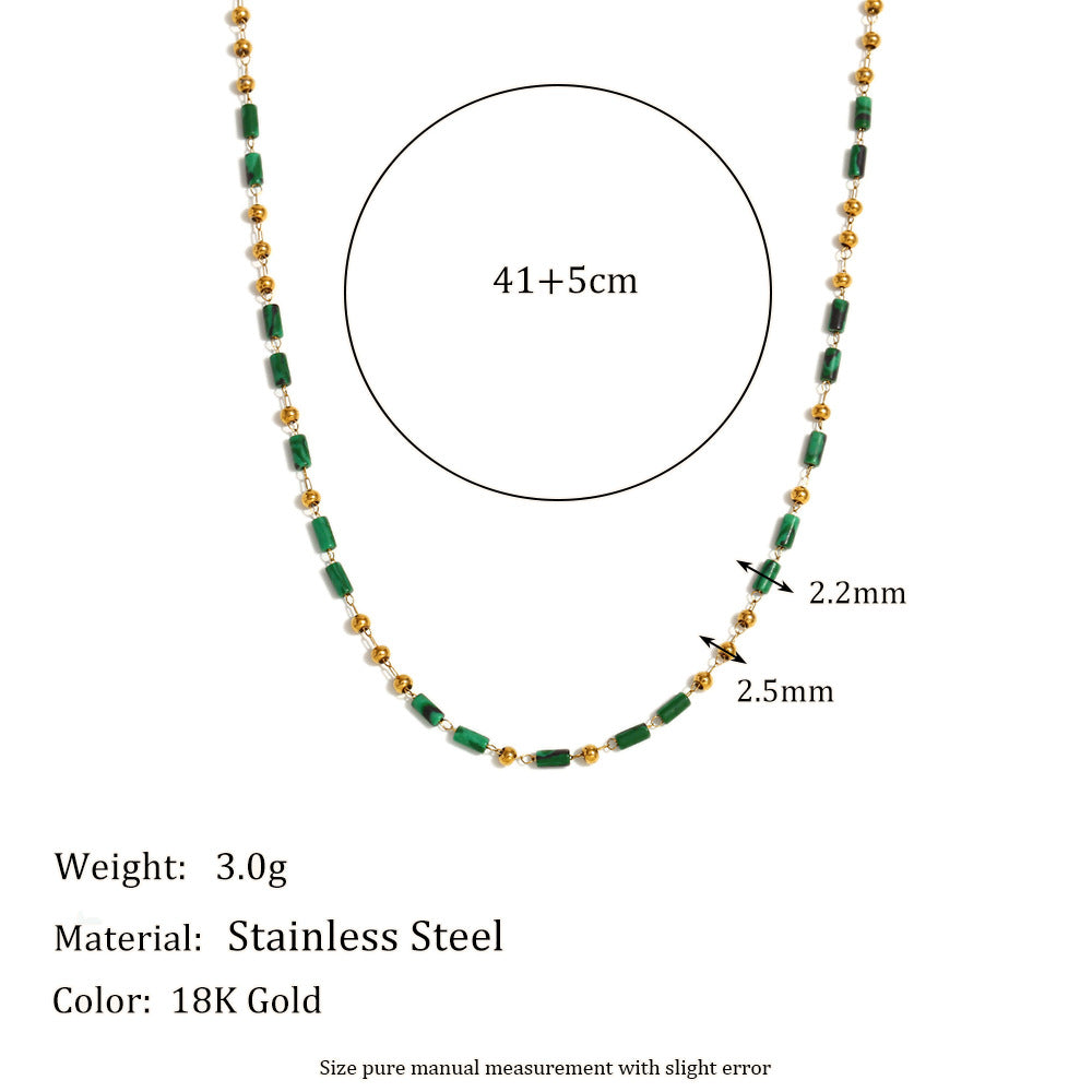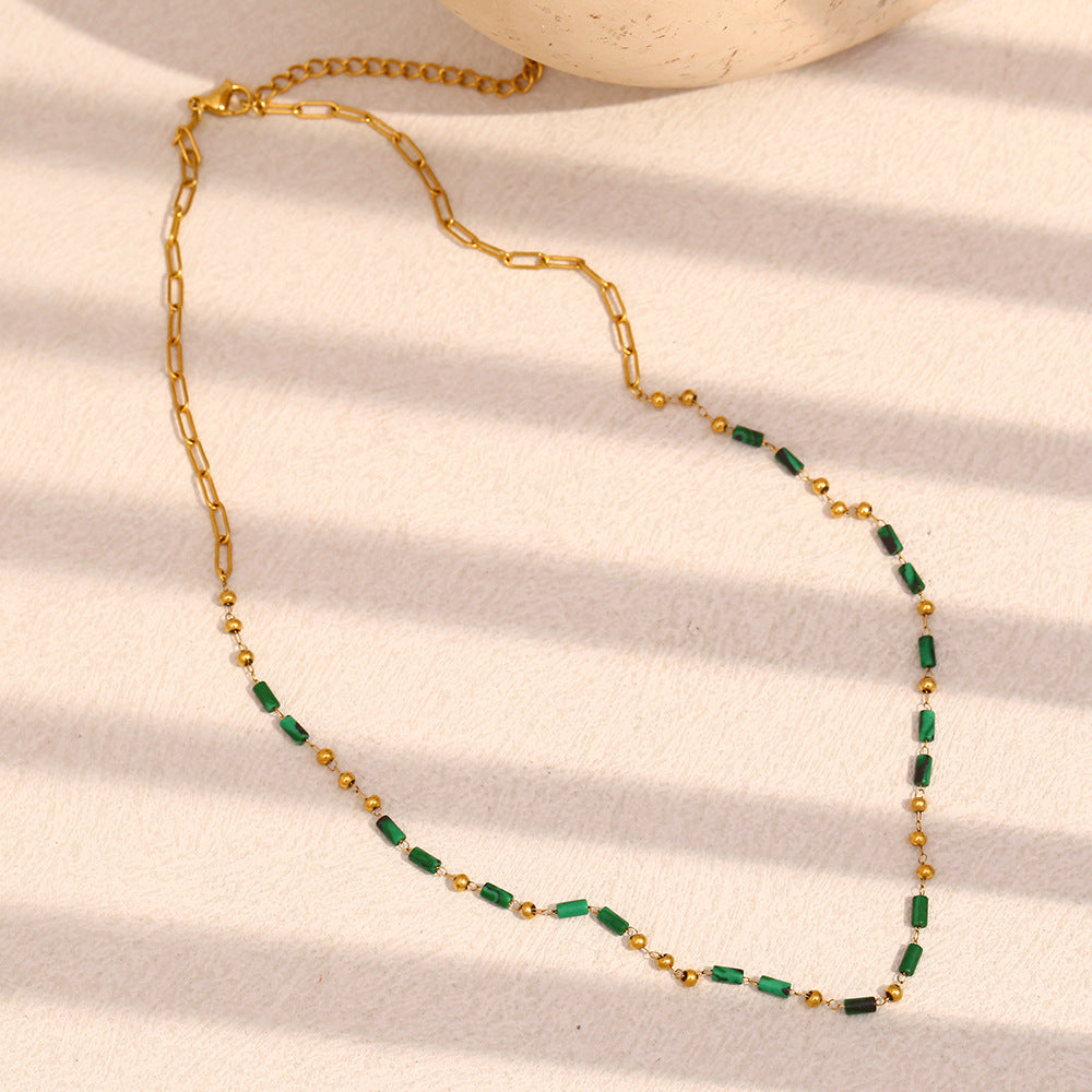 Niche Retro French Pendant Stainless Steel 18K Gold Plated Cylindrical Natural Stone Clip Bead Necklace