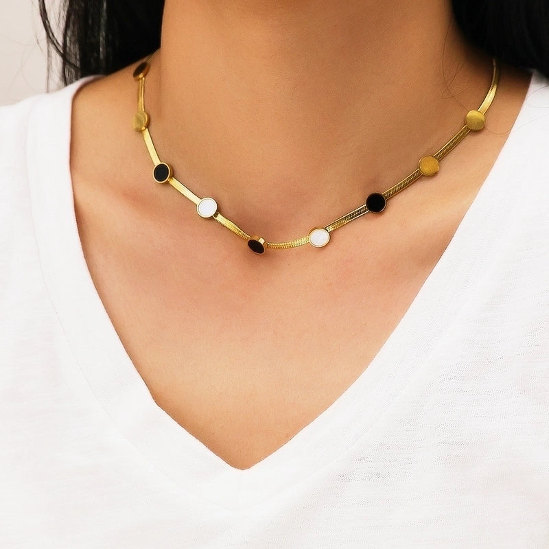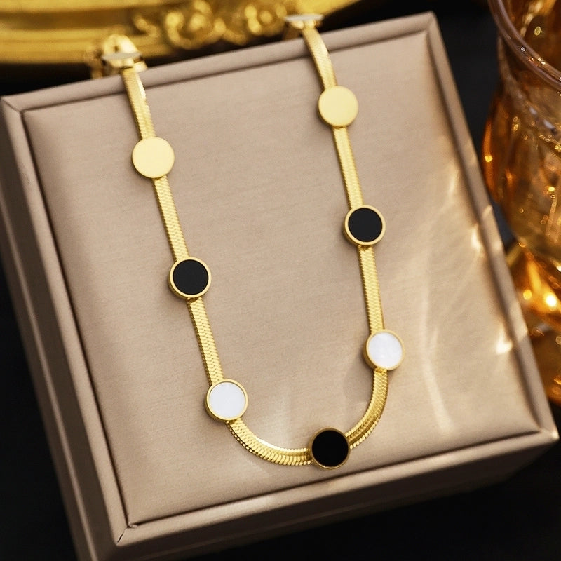Nordic Style French Style Minimalist Round 304 Stainless Steel Shell Zircon 18K Gold Plated Inlay Necklace
