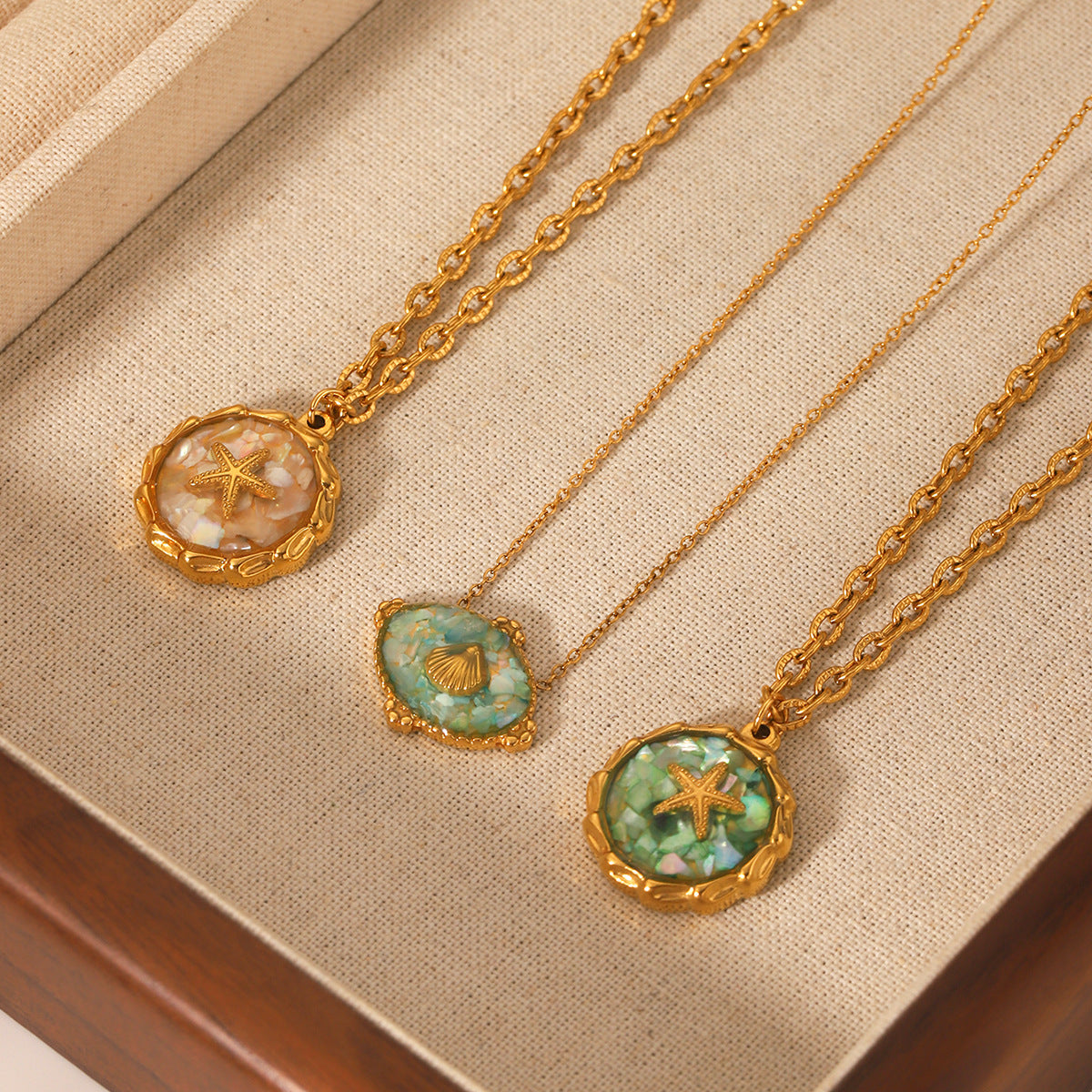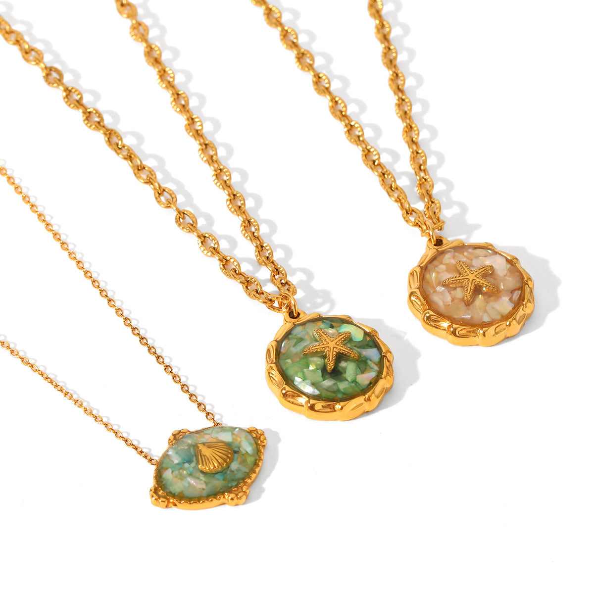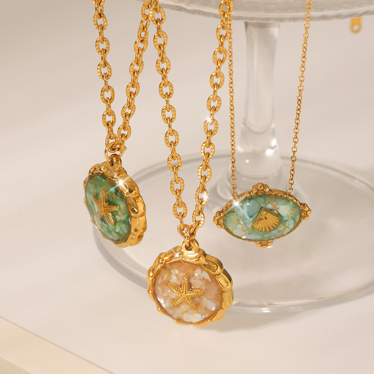 Ocean Style Starfish Shell Drop Glue Pendant Stainless Steel Necklace Clavicle Chain Titanium Steel Necklace