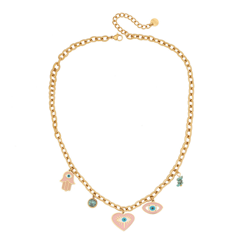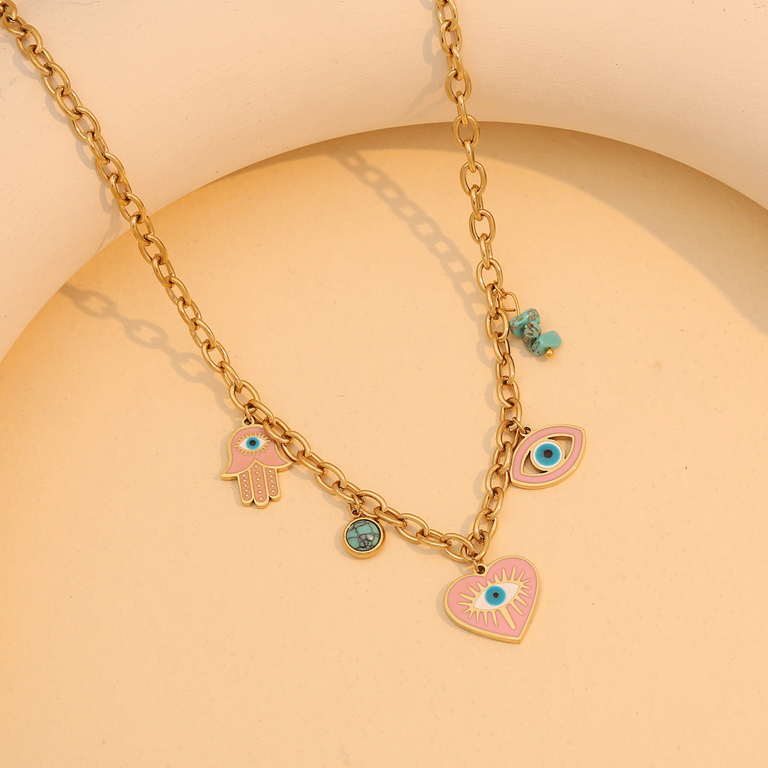 Oil Drop Heart Eye Pendant Personalized Palm Stainless Steel Necklace N1477