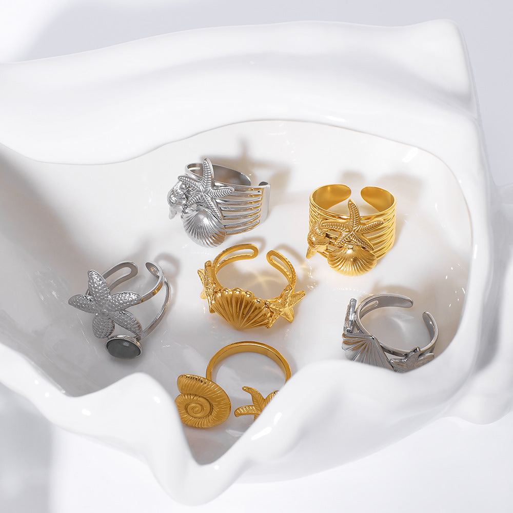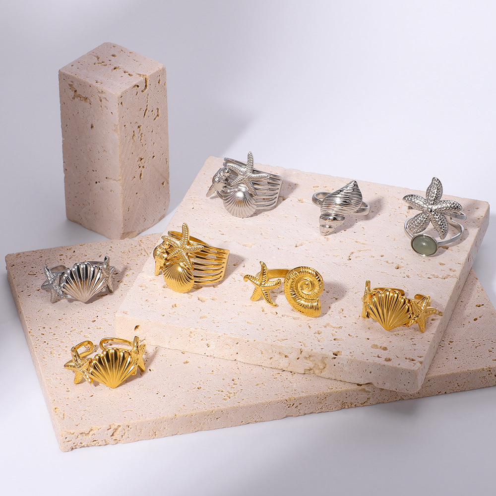 Open Ring IG Style Shell Geometric Geometric Stainless Steel Electroplating Rings