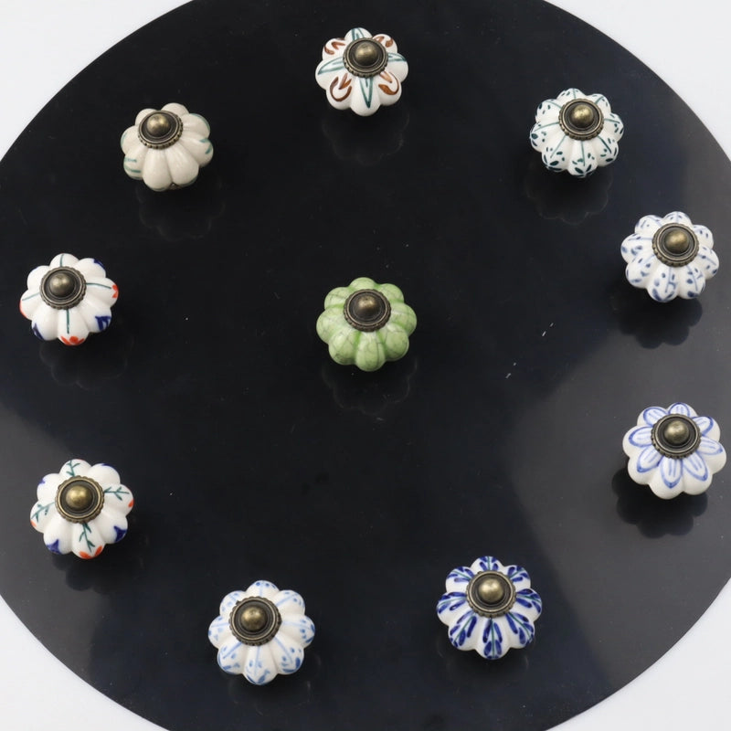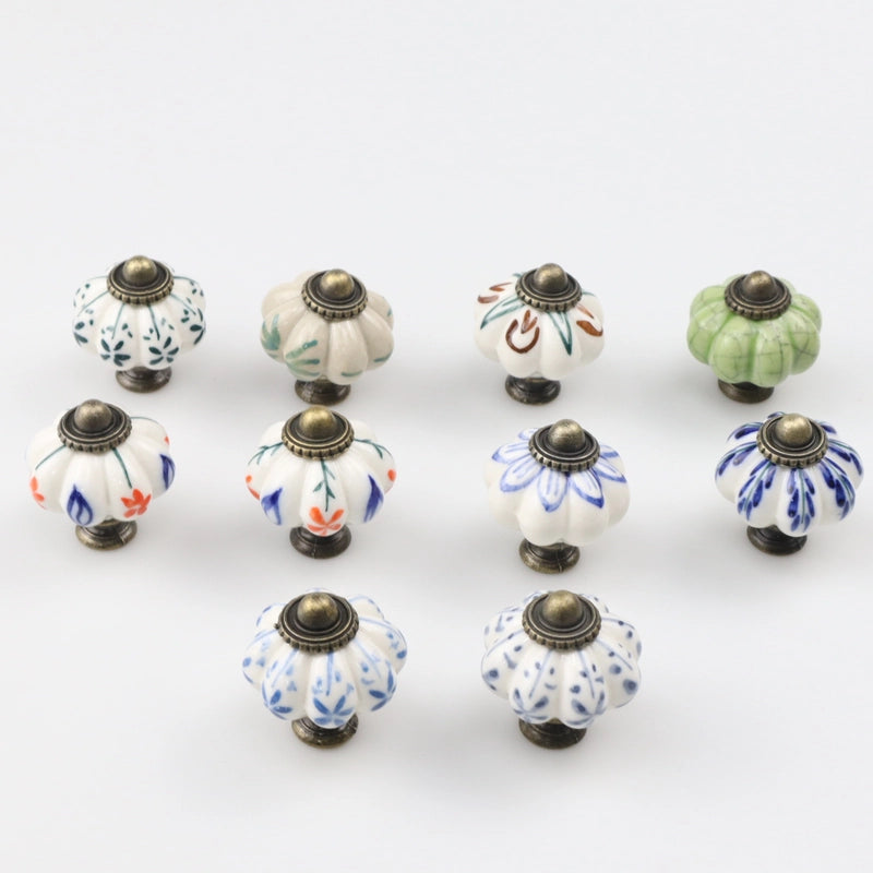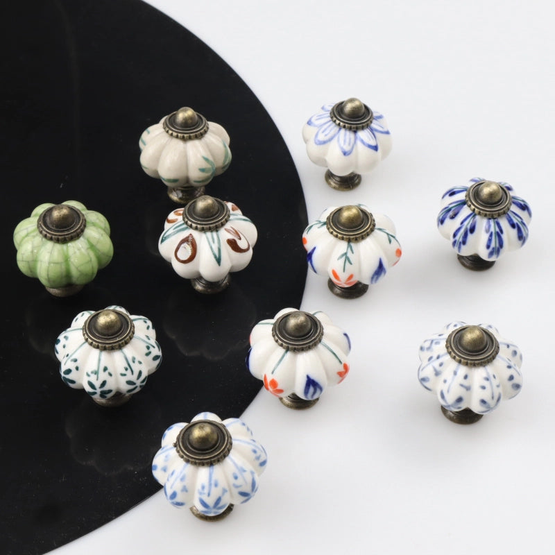Patterned Pumpkin Ceramic Handle European Style Cabinet Wardrobe Door Handle Solid Wood Cabinet Door Handle Log Style Drawer Handle