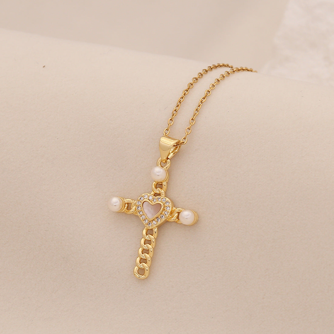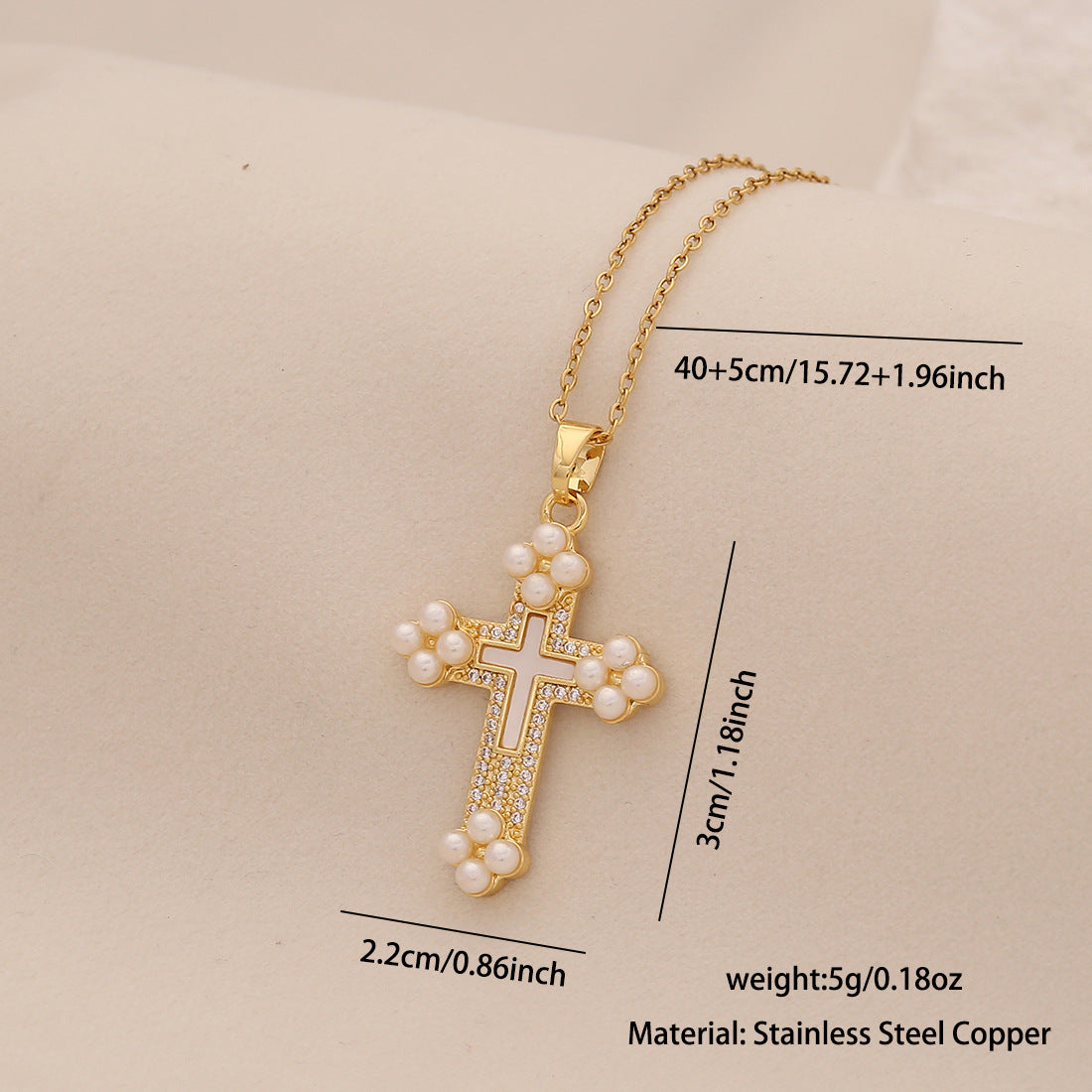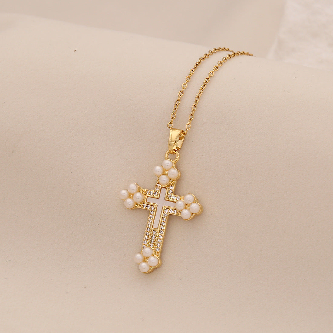 Pearl Cross Pendant Necklace Personalized Stainless Steel Clavicle Chain Trendy Necklace N1527