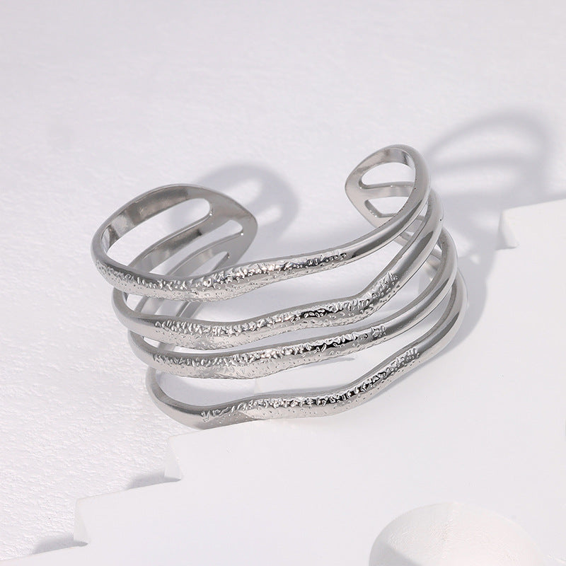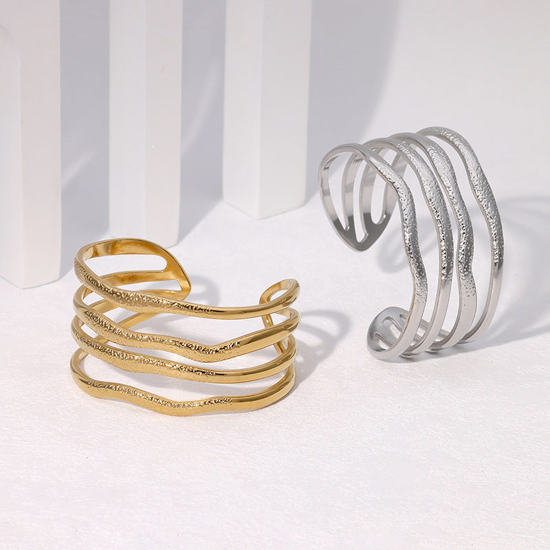 Personality Exaggerated Wide Bracelet Gold-Plated Retro Geometric Irregular Stainless Steel Bracelet For Women