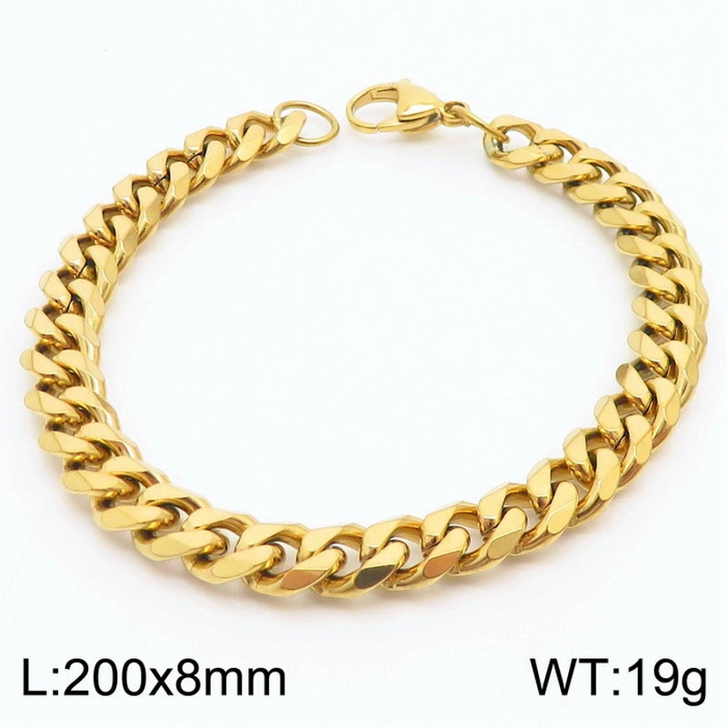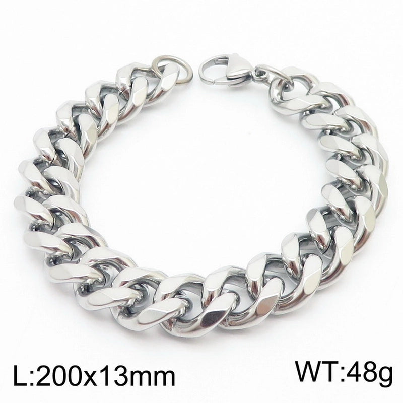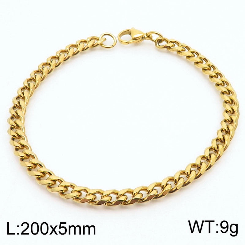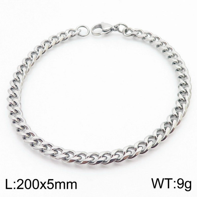 Personality, Trend, Fashion Stainless Steel Multi-Specification Cuban Link Chain Bracelets For Men And Women