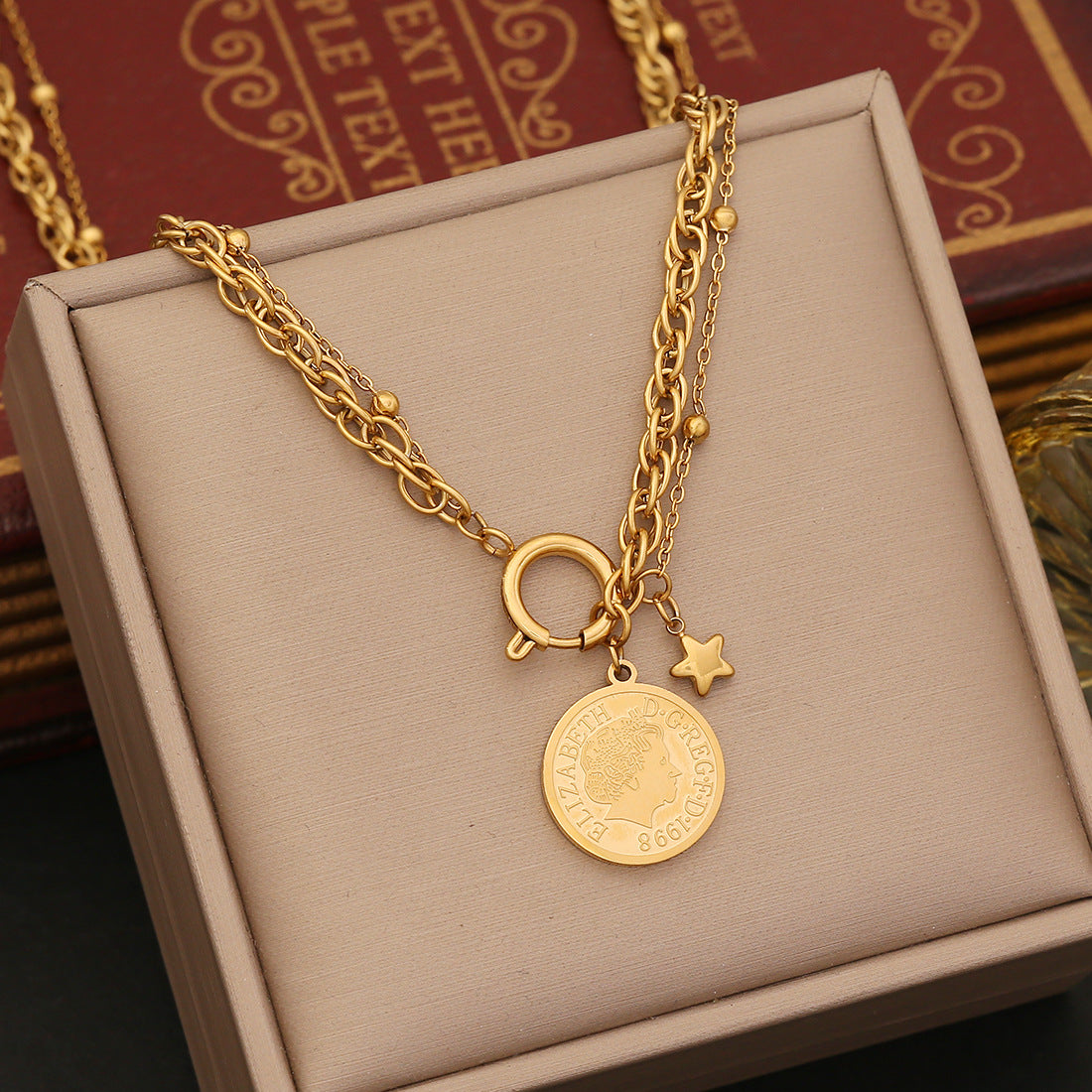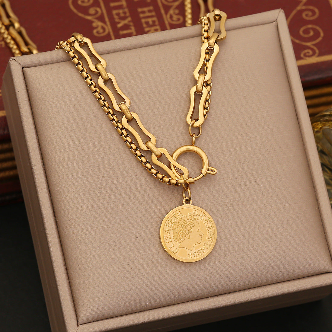 Personalized Coin Pendant Stainless Steel Clavicle Chain N1474