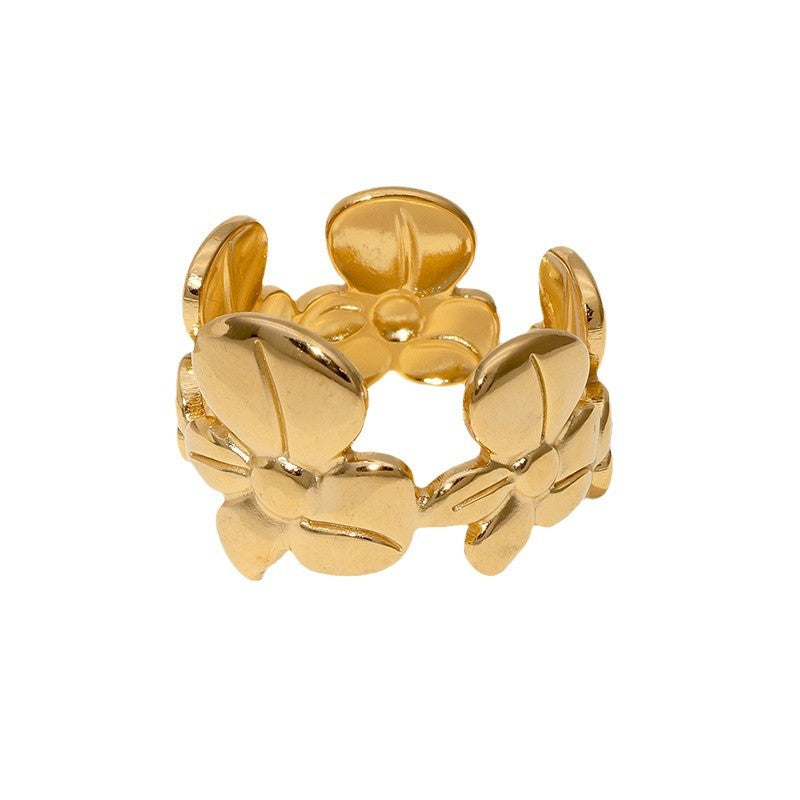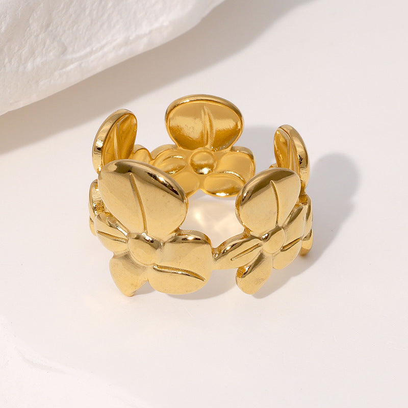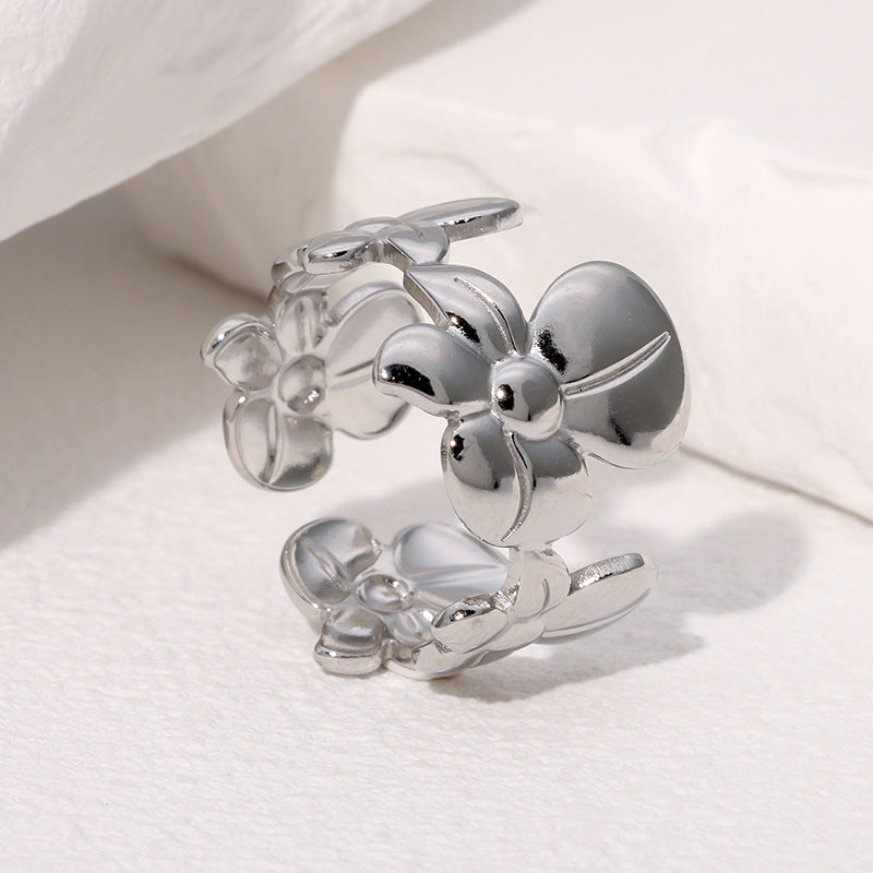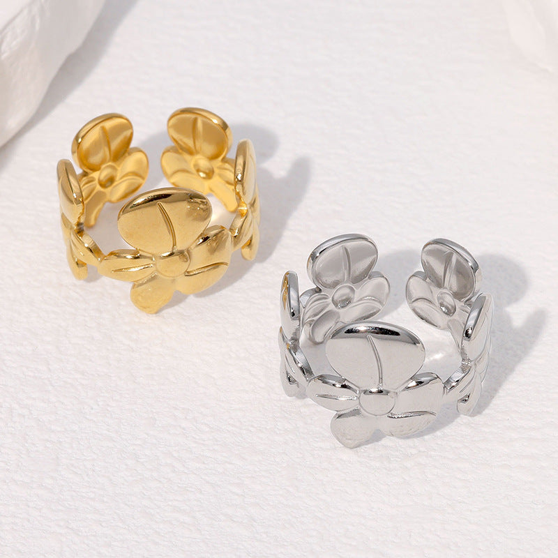 Personalized Fashion Design Niche Simple And Versatile Flower Stainless Steel Open Ring