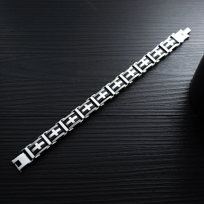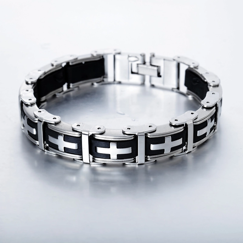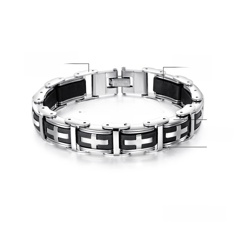 Personalized Hot Creative Ornament Men’s Bracelet Classic Cross Stainless Steel Silica Gel Bracelet Holiday Gift